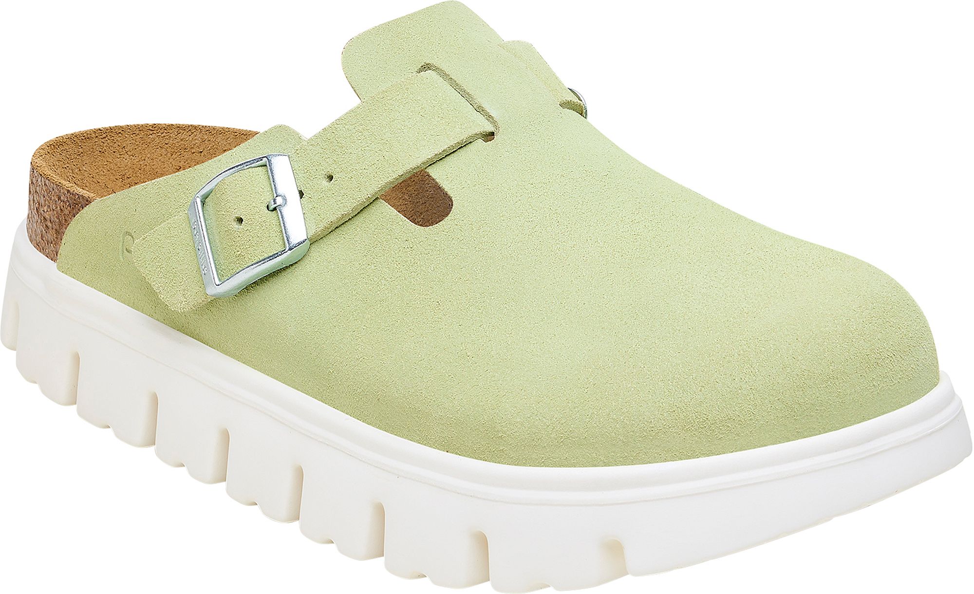 Contoured cork-latex footbed creates custom support with wear
