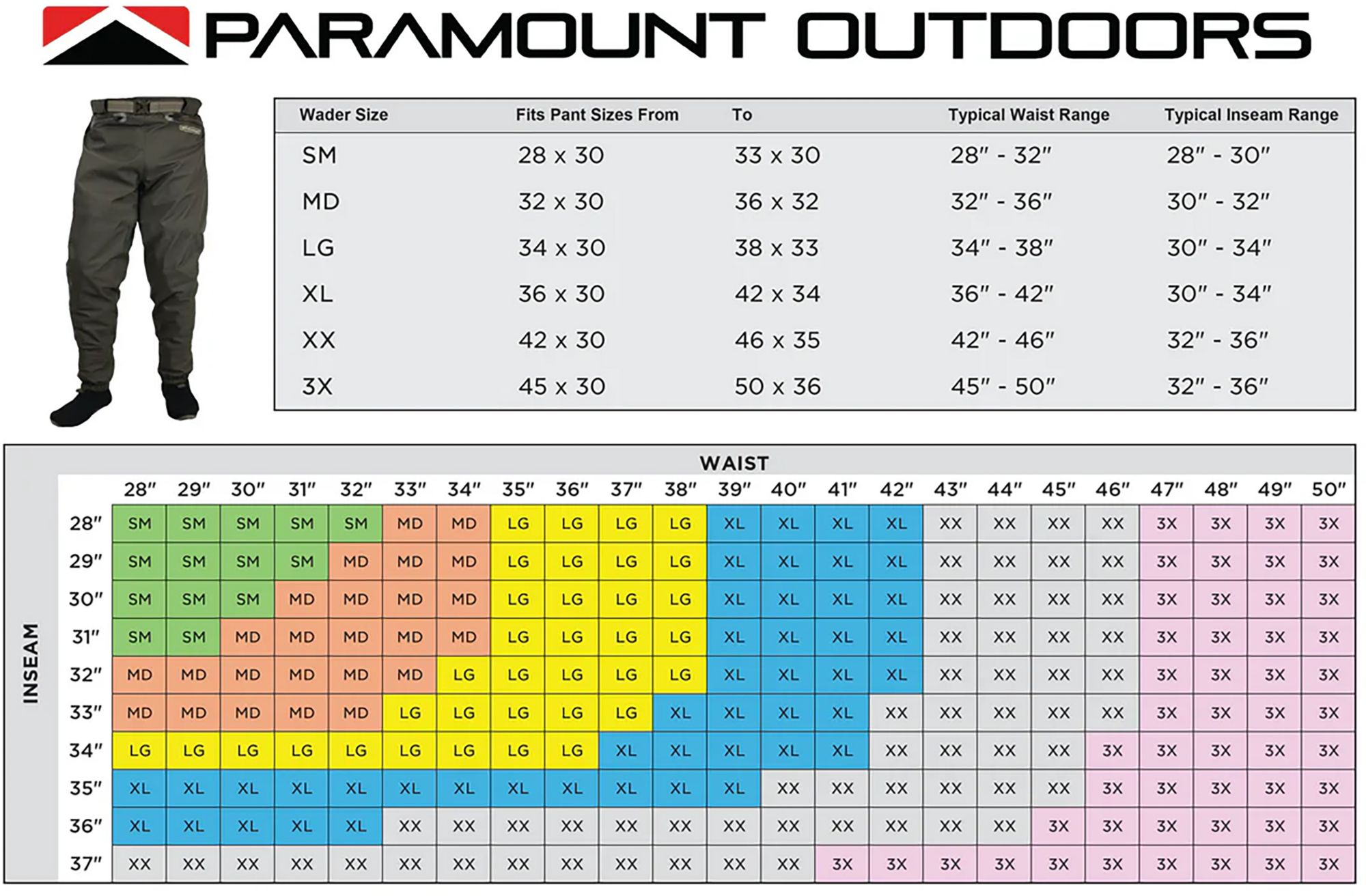 - Waist high wader pant design ideal for small water drift boats or kayak fishing