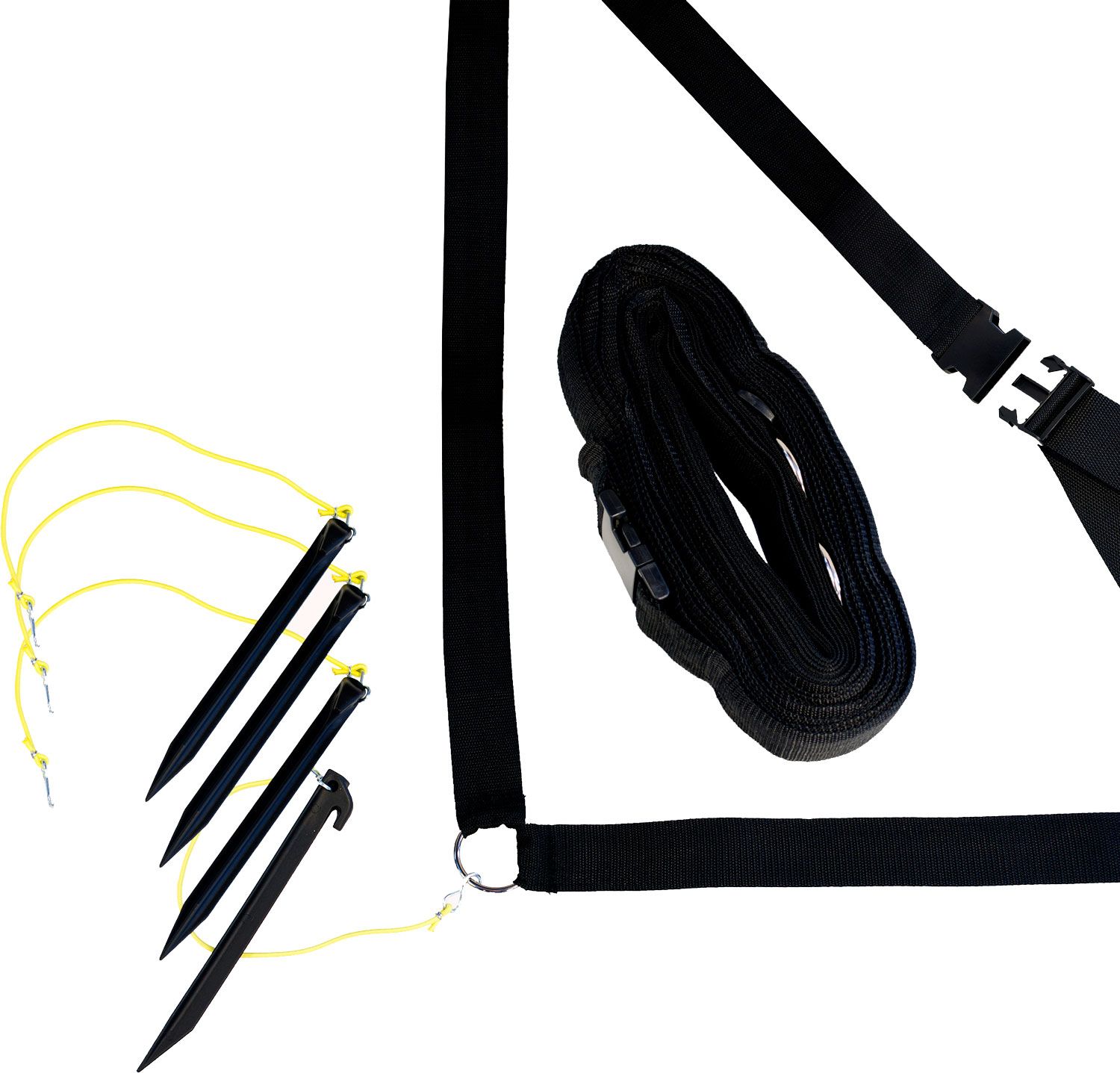 The 2’’ Volleyball Webbing Boundary set is designed for outside wear and tear over the years, as well as easy set-up for game time, anytime. The four corner stakes, bungee cord attachments, and plastic buckles allow the dimensions to range anywhere from full court or FIVB standardized short court dimensions. The perfect volleyball game is waiting in your own backyard or on the sandy beaches with this set.
