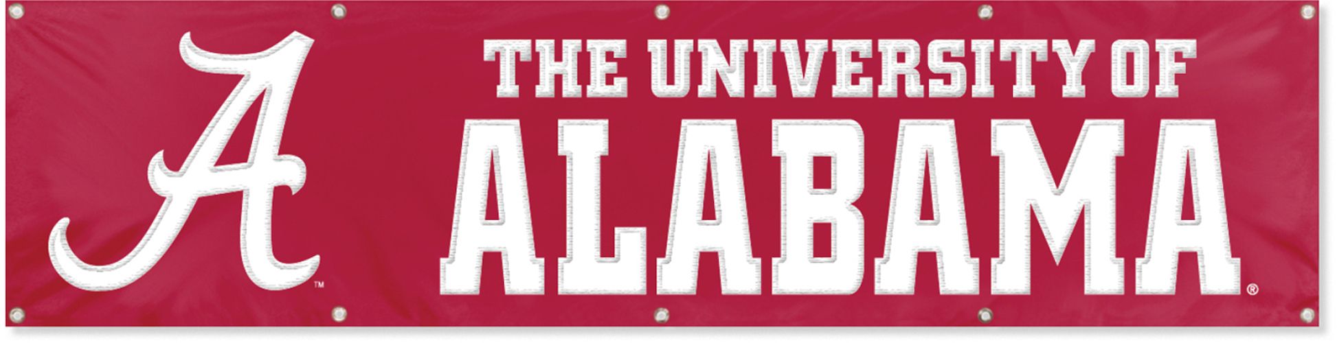 Show you’re true to your school loudly and proudly, with the Party Animal® Alabama Crimson Tide Giant Banner. This 8’ x 2’ heavyweight banner features a team applique embroidery and is perfect for parties, picnics and game rooms. Its weather-resistant nylon fabric and sewn in grommets make for easy hanging and outdoor display. Decorate your favorite space with Tide pride with the Party Animal® Giant Banner.
