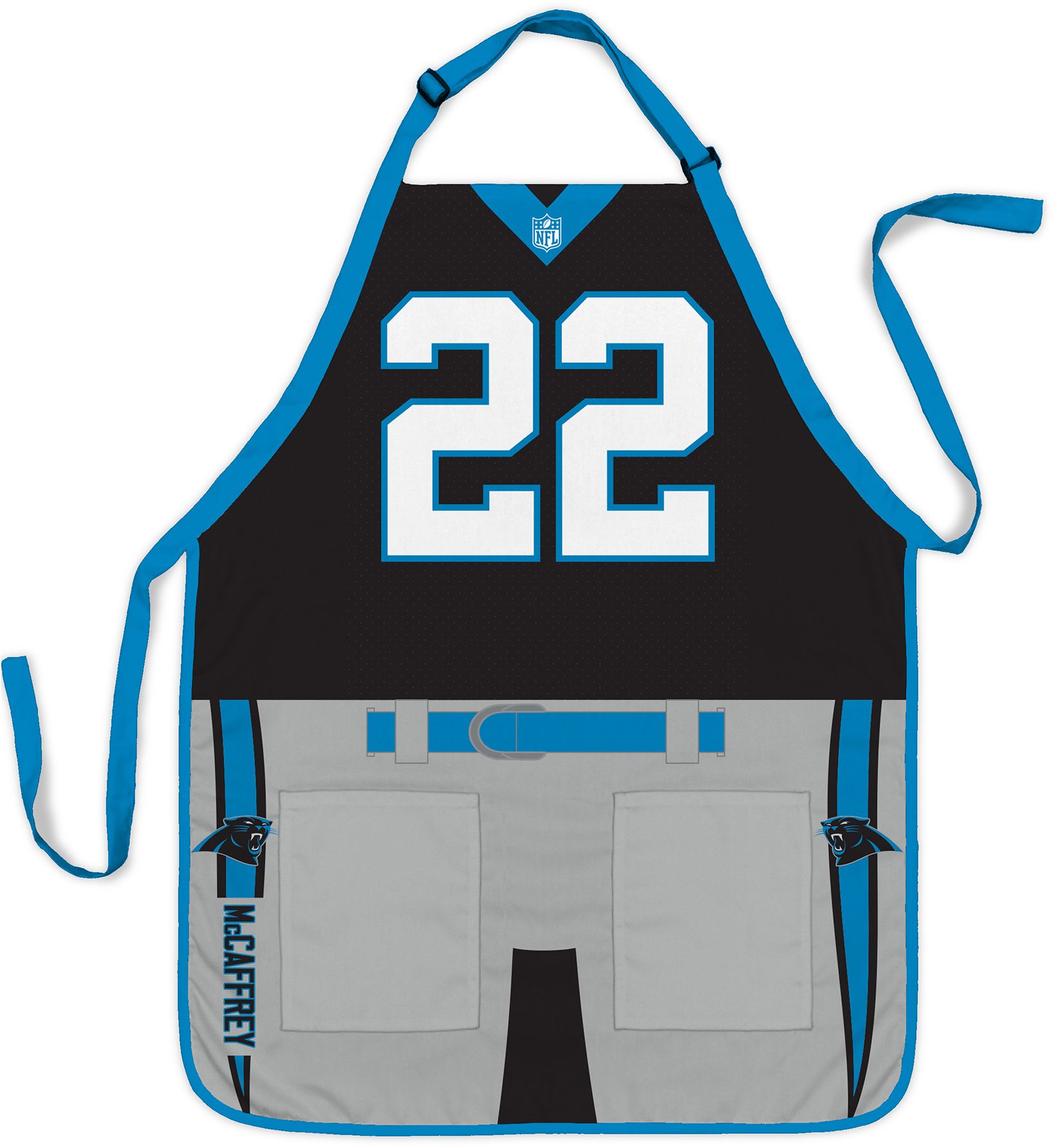 Grill while showing your team spirit with the Party Animal® Carolina Panthers Christian McCaffrey #22 Uniform Apron.