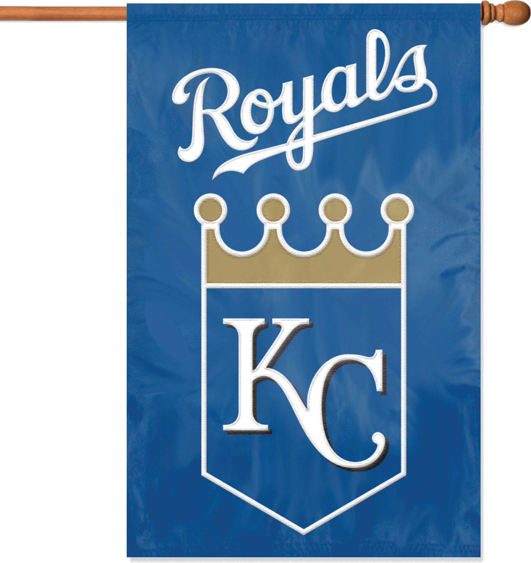 Let your team spirit soar with the Party Animal® Kansas City Royals Applique Banner Flag. This durable, oversized flag features hang tabs for easy attachment to a flag pole and a quality team applique embroidered on each side. The team banner flag measures 44” x 28” and is made of weather-resistant nylon. Show the neighbors you’re a Royals fan even in the off season with the Party Animal® Applique Banner Flag.