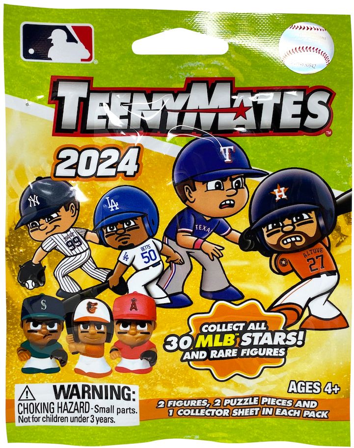 Show off your team spirit with the Party Animal MLB TeenyMates Figurines. Each pack contains two selected figurines and puzzle pieces that feature your favorite team graphics, making them perfect for any fan's collection. Officially licensed and designed for ages 4 and up, these figurines are a fun and durable way to celebrate your love for the game.