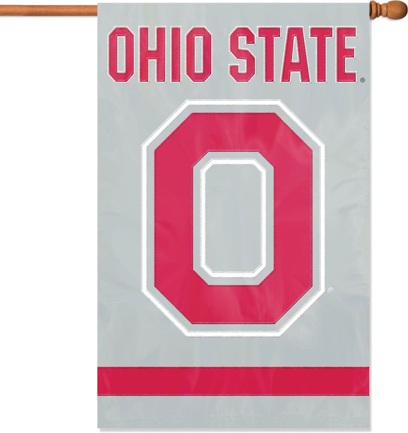 Brandish your favorite team’s logo with this officially licensed Party Animal® Ohio State Buckeyes applique, double-sided banner flag. The oversized, 44” x 28” banner flag is made of heavyweight, weather-resistant 420-denier nylon and showcases high-quality applique and embroidery, leaving no doubt as to what team you support. The banner includes a sleeve for hanging on a standard house flagpole and hanging tabs for added versatility.