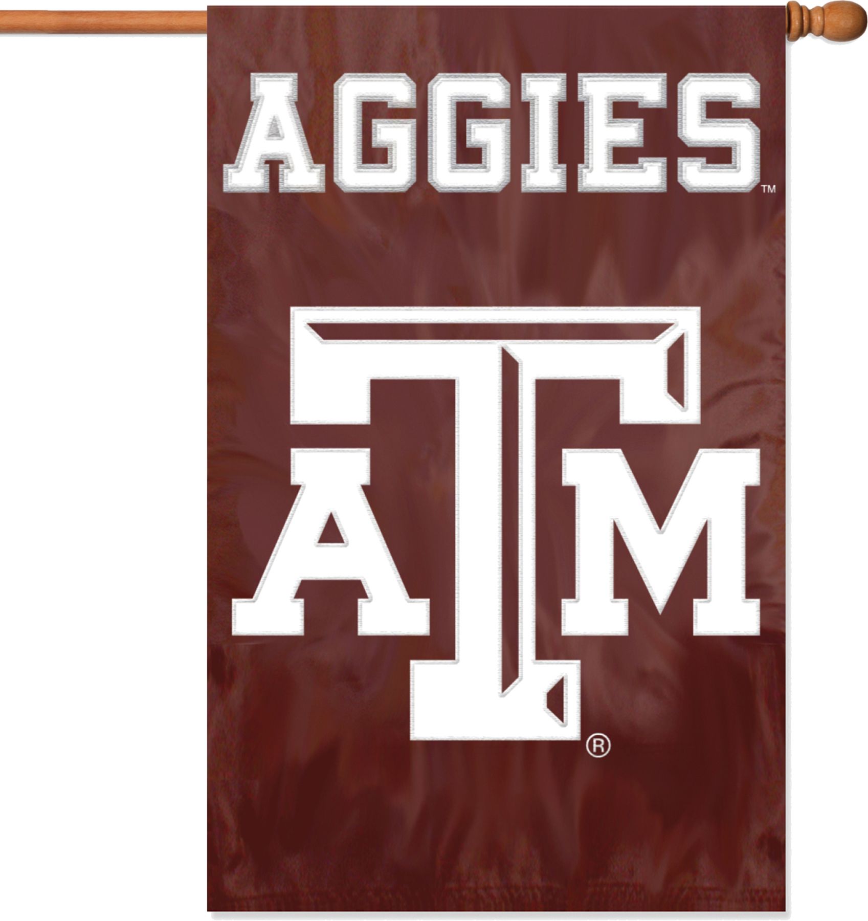 Let your team spirit soar with the Party Animal® Texas A&M Aggies Applique Banner Flag. This durable, oversized flag features hang tabs for easy attachment to a flag pole and a quality team applique embroidered on each side. The team banner flag measures 44” x 28” and is made of weather-resistant nylon. Show the neighbors you’re an Aggies fan even in the off season with the Party Animal® Applique Banner Flag.