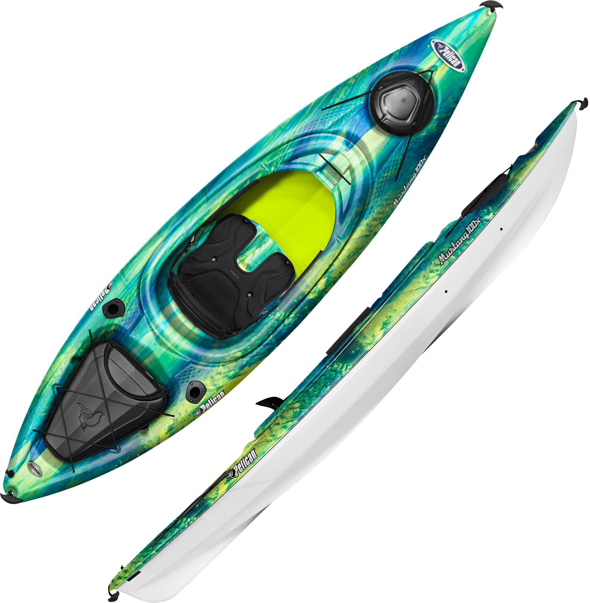 Made for fishing and easy to paddle, the Pelican® Mustang 100X Kayak offers comfort, stability and awesome performance all in one boat. The Mustang includes fishing rod holders, plenty of storage, and also a removable storage container. This kayak boasts a rigid construction that’s built tough.