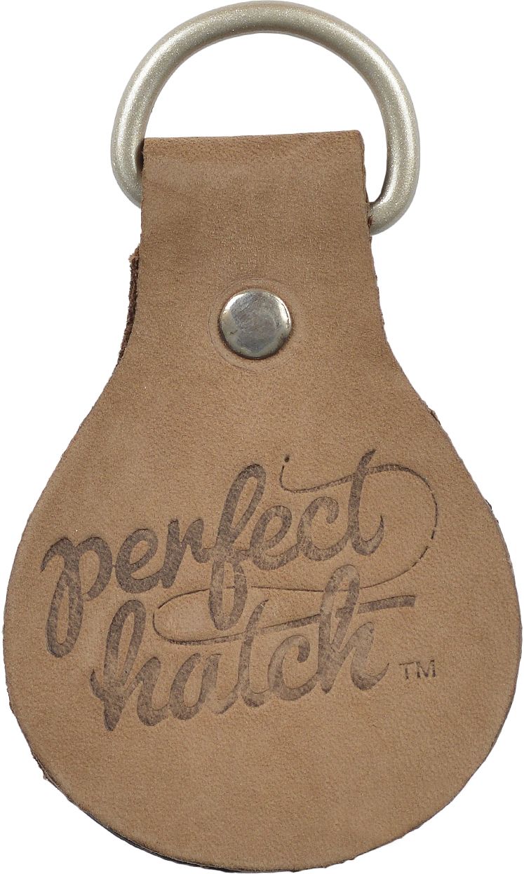 Run your leader through the sturdy leather pads to straighten it and remove kinks and memories. Attach it to your keyring or retractor with the attached loop.