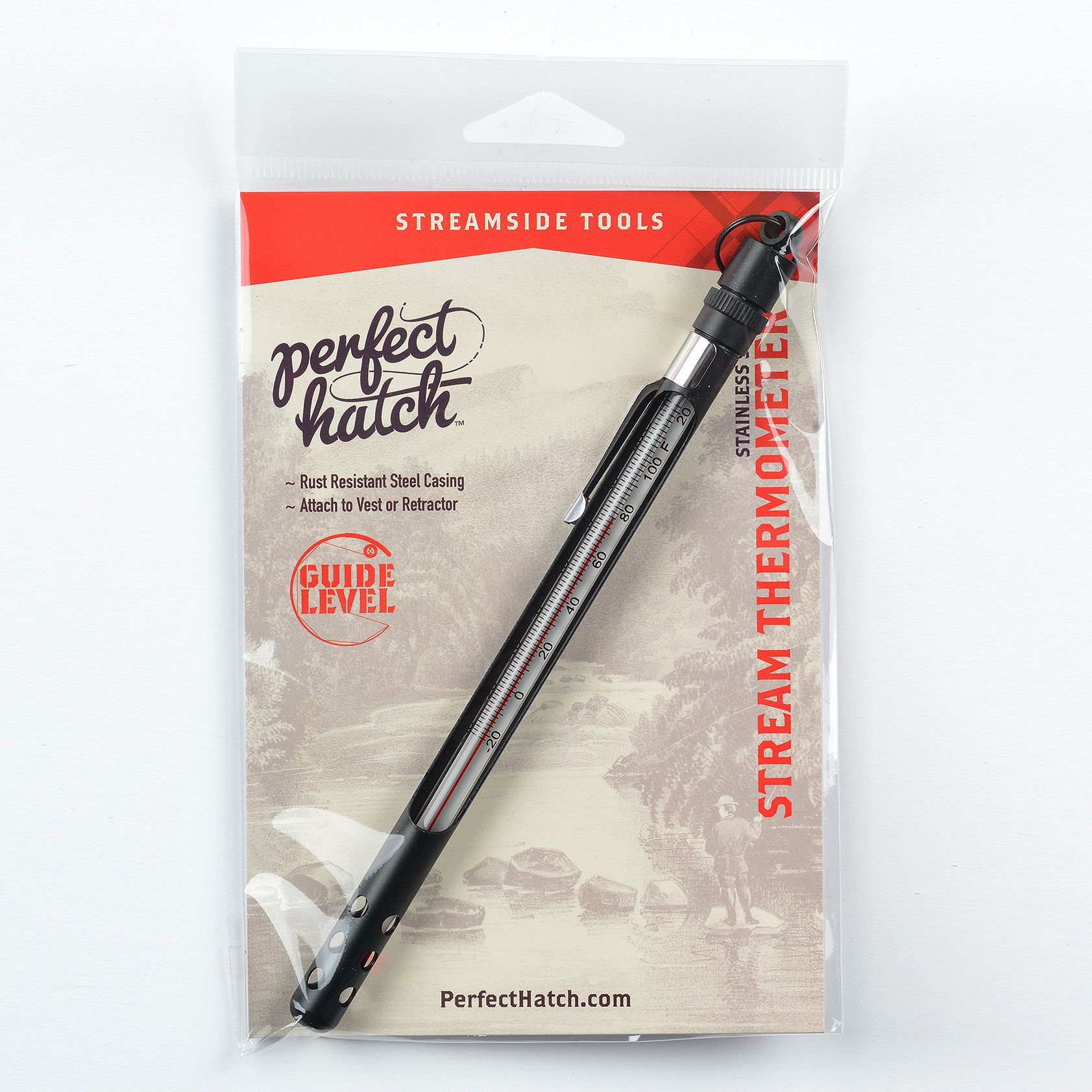 Knowing the water temperature means knowing where to go for a successful day of fishing. The Perfect Hatch® Stream Thermometer provides accurate readings and the rust-resistant steel casing will provide years of service.