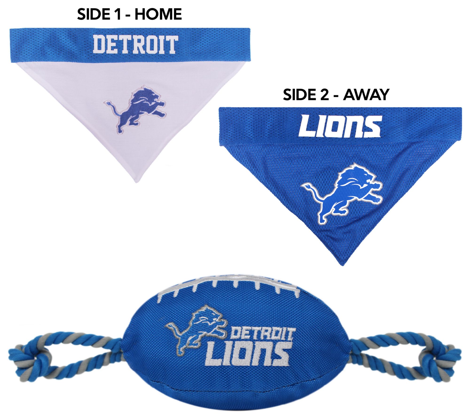 Pets First Detroit Lions Bandana and Rope Toy Set
