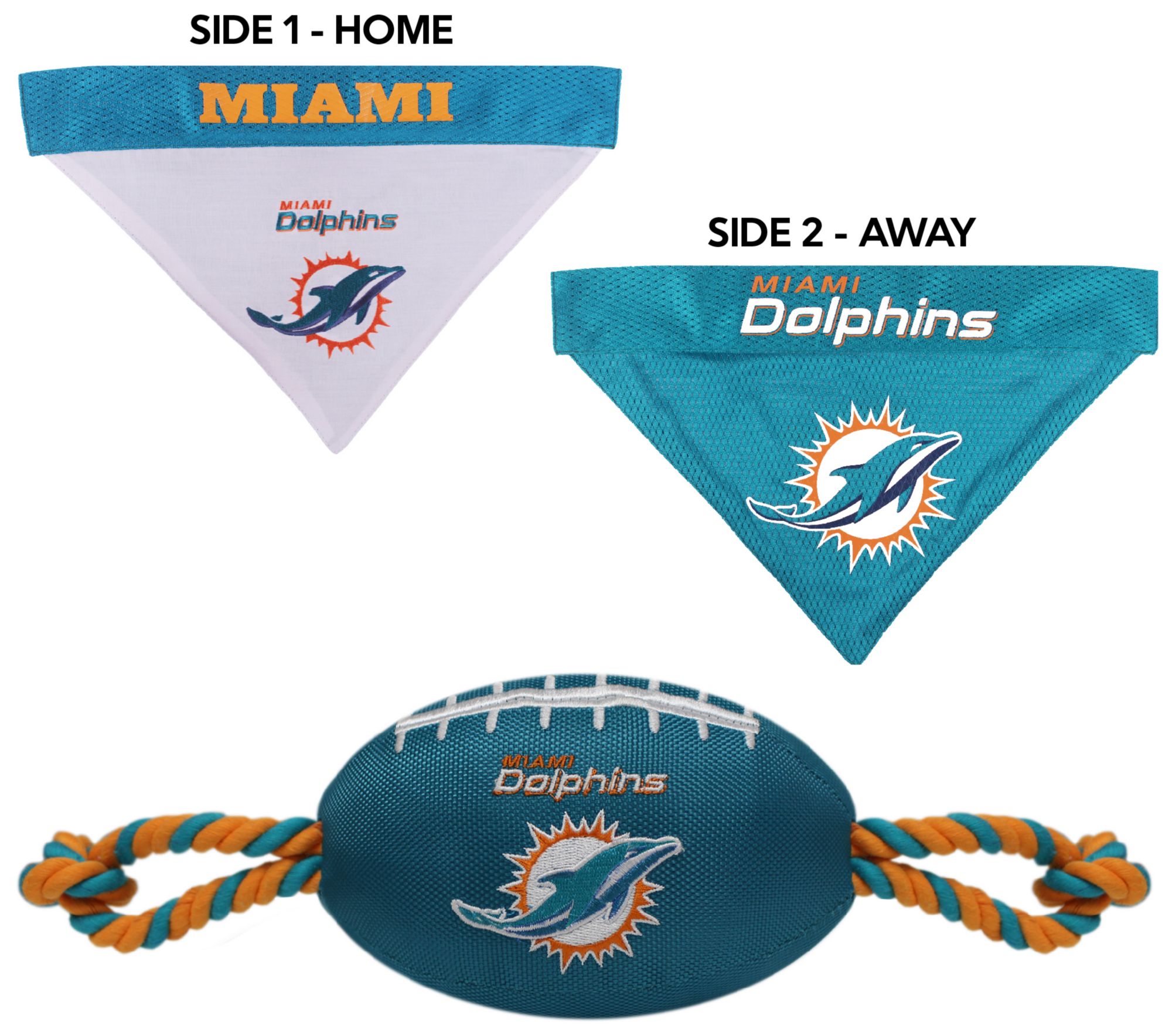 Pets First Miami Dolphins Bandana and Rope Toy Set