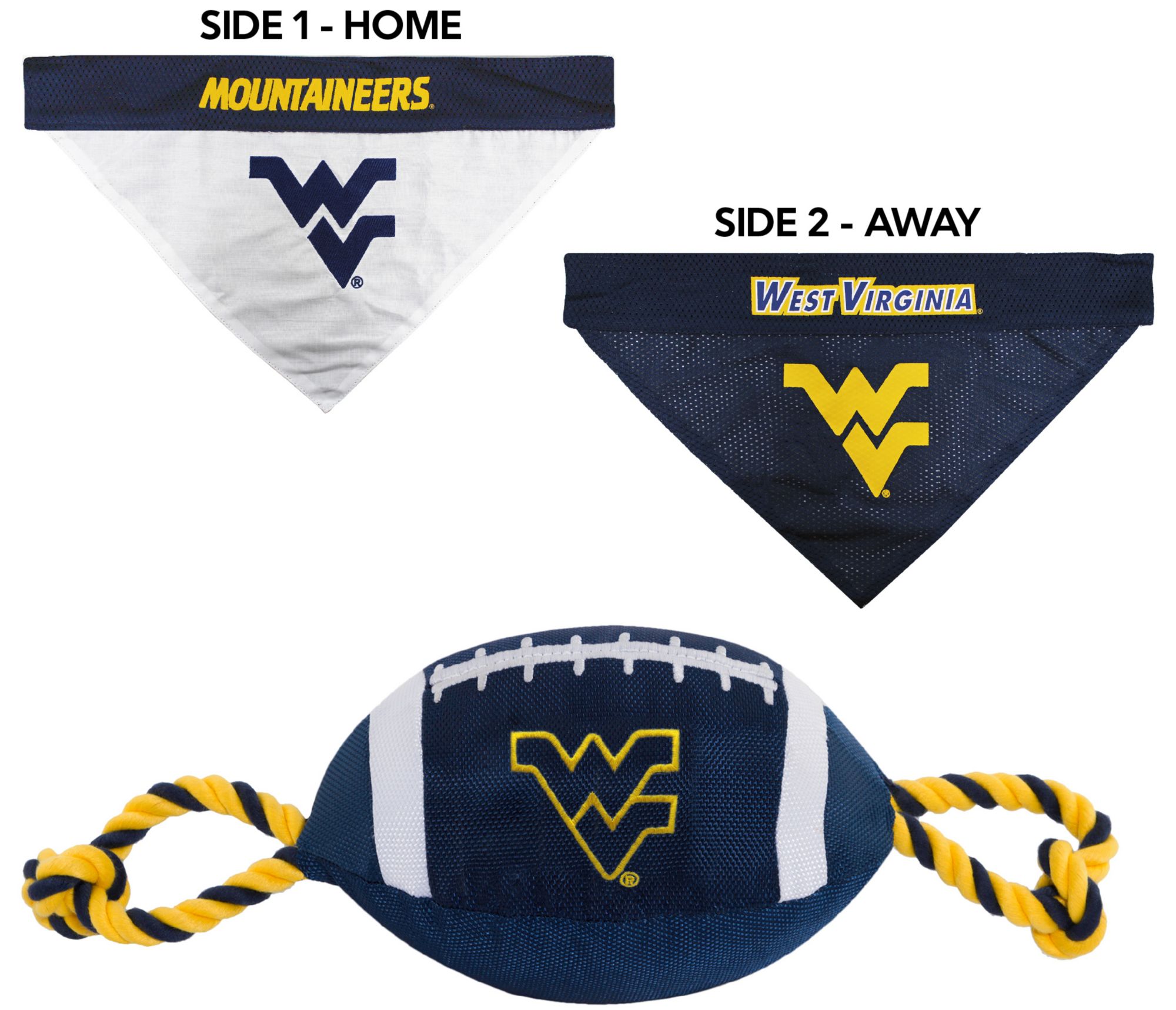 Pets First West Virginia Mountaineers Bandana and Rope Toy Set