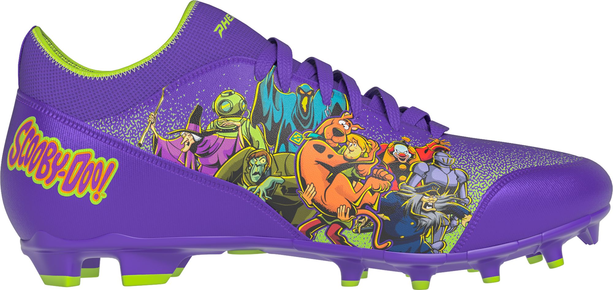 Officially Licensed Scooby-Doo Design: Show off your love for Scooby-Doo with these exclusive unmasked purple cleats that boast vibrant colors, bold graphics, and the iconic Mystery Machine