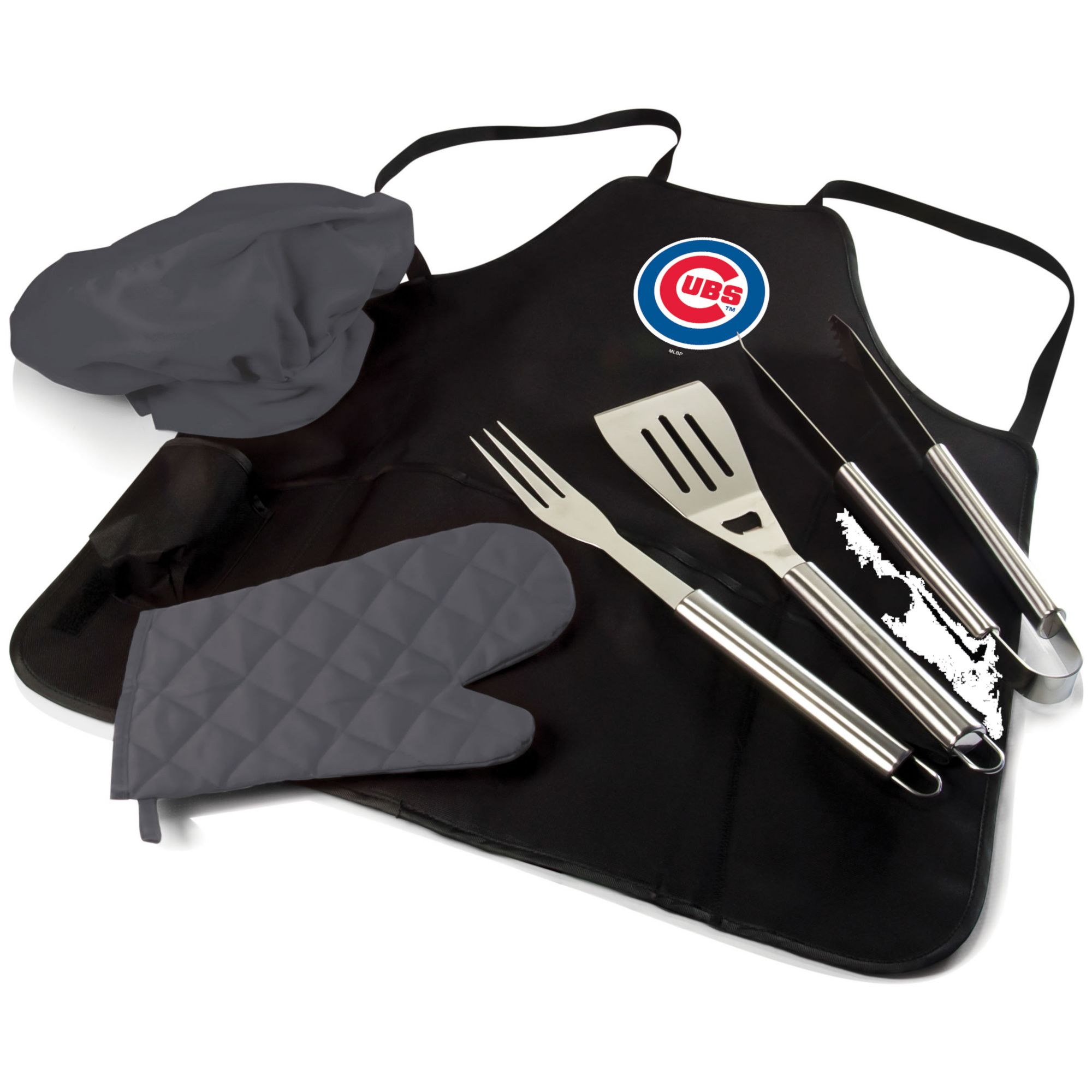 Converts to full-sized apron with deluxe barbecue set inside