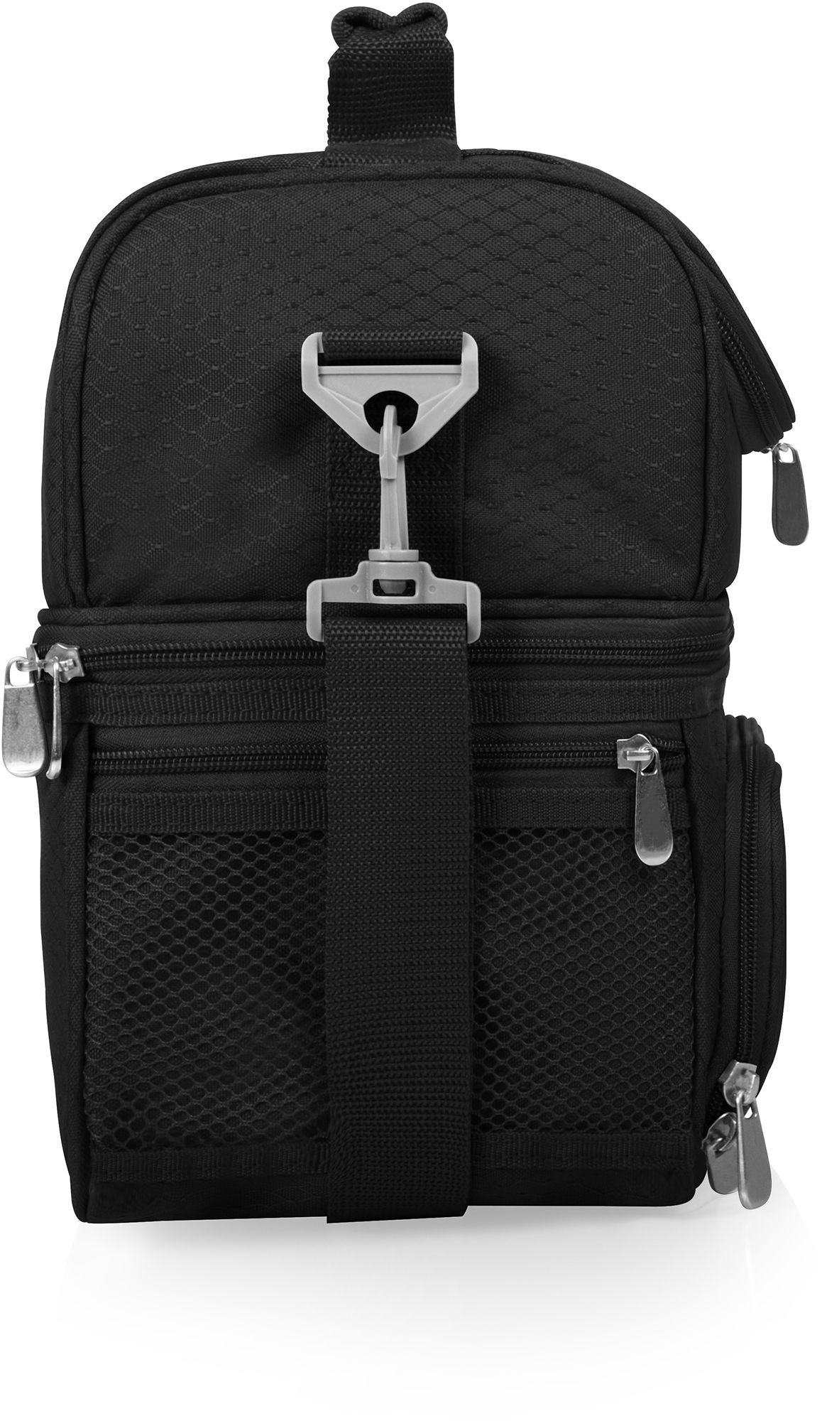Zippered mesh pockets on each side provide the perfect space for keys, wallets, or other essentials