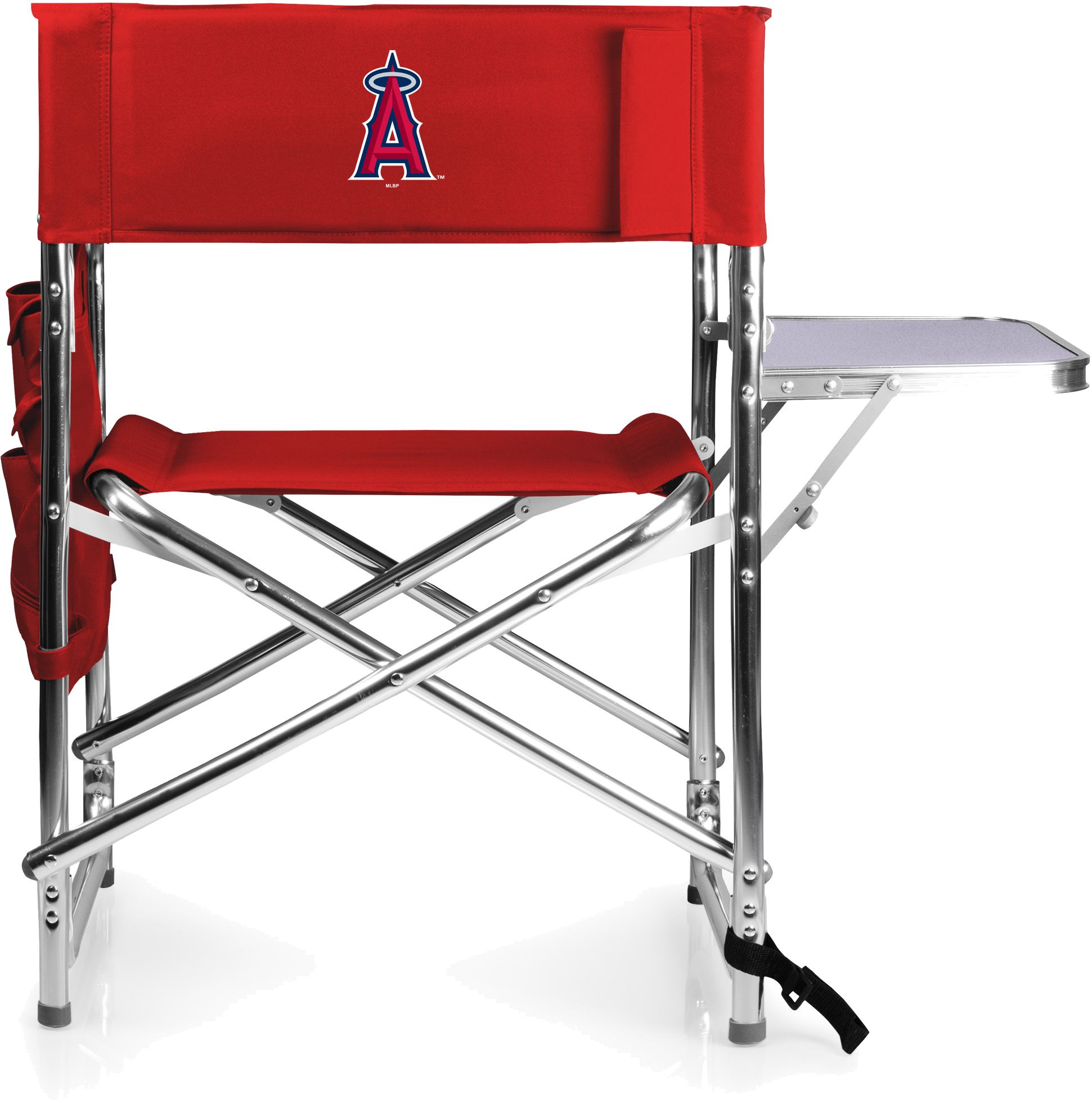[This review was collected as part of a promotion.] I love this chair! It's perfect for the beach and my boys sporting events. It folds down and up easily. The seat lays flat and is very sturdy. The tray table is the best feature! I love all the storage on the other side, but I do wish it was sewn on and not velcro.