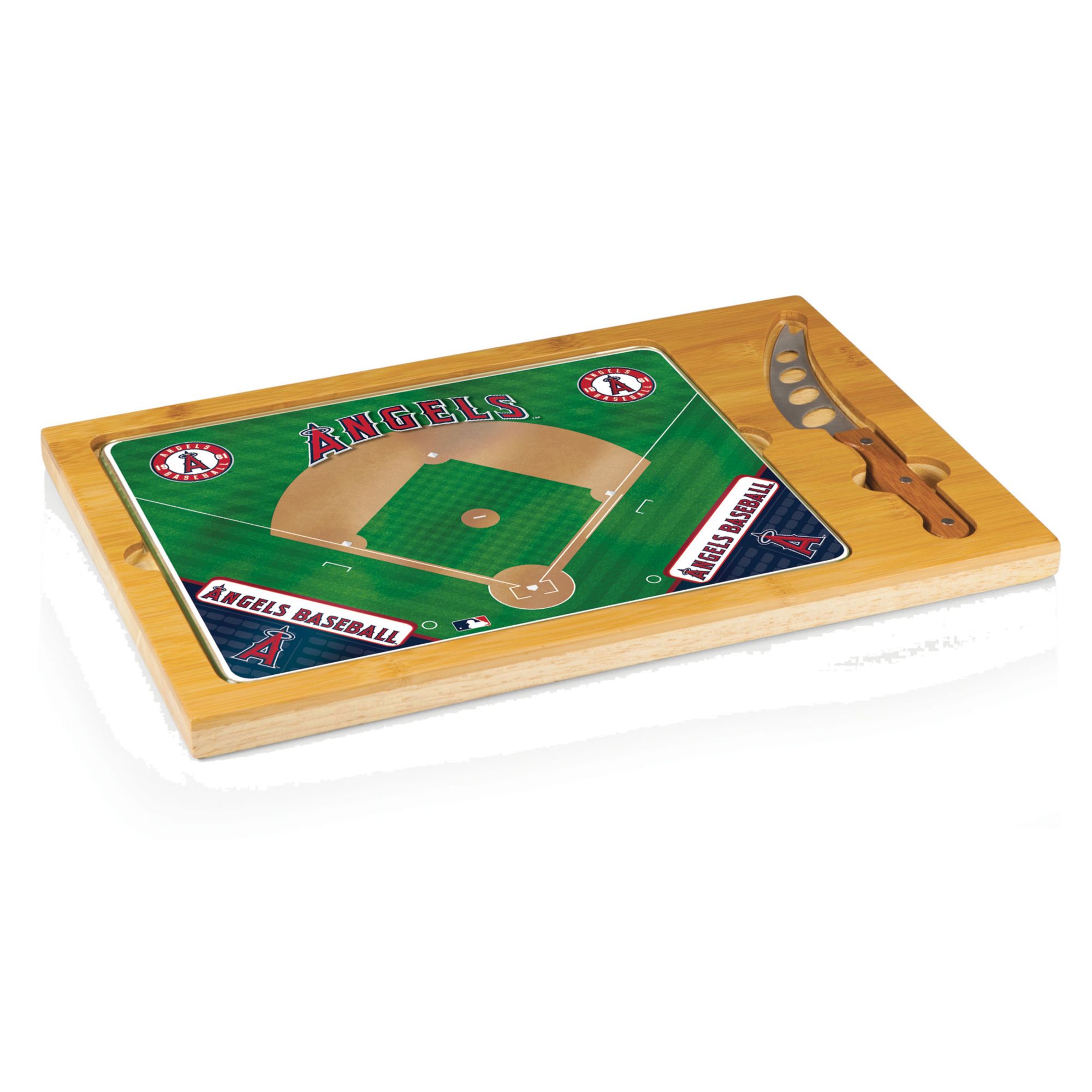 [This review was collected as part of a promotion.] Toscana - Disney Mickey Mouse Icon Glass Top Serving Tray with Cheese Knife is such a fun way to serve cheese, crackers and fruit to family and friends. Strong and durable, this tray is made from rubber wood and bamboo. I have used to cut and serve cheese. The knife is stored in its own built in the tray area. The holes in the knife help the cheese from sticking to the blade and it works great. The glass top is removable from the tray so you can use as a serving tray. I highly recommend to those who love Mickey Mouse and want a fun and unique way to serve cheese and other foods in a beautiful looking tray. Great gift idea.