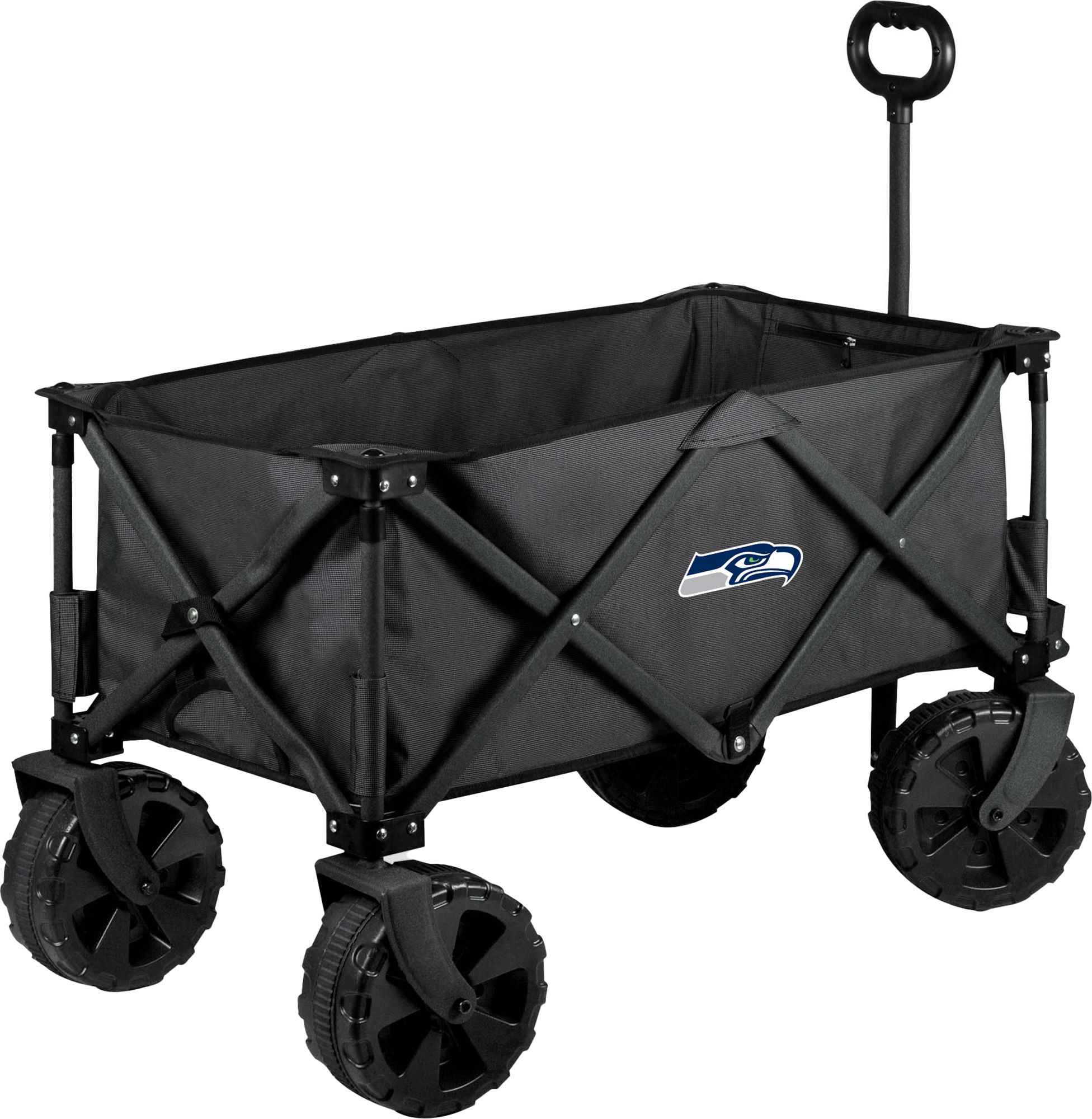 [This review was collected as part of a promotion.] I was so excited to try this all terrain cooler wagon. I have two small kids and was looking for something to take on our outings. The wagon is a nice big size but folds really compact. It's very convenient that it has a cooler built-in to keep our foods and drinks cool. The wagon was nice to maneuver and looks really nice. I like the big tires and makes it easy to haul all our belongings. It was also very easy to set up.