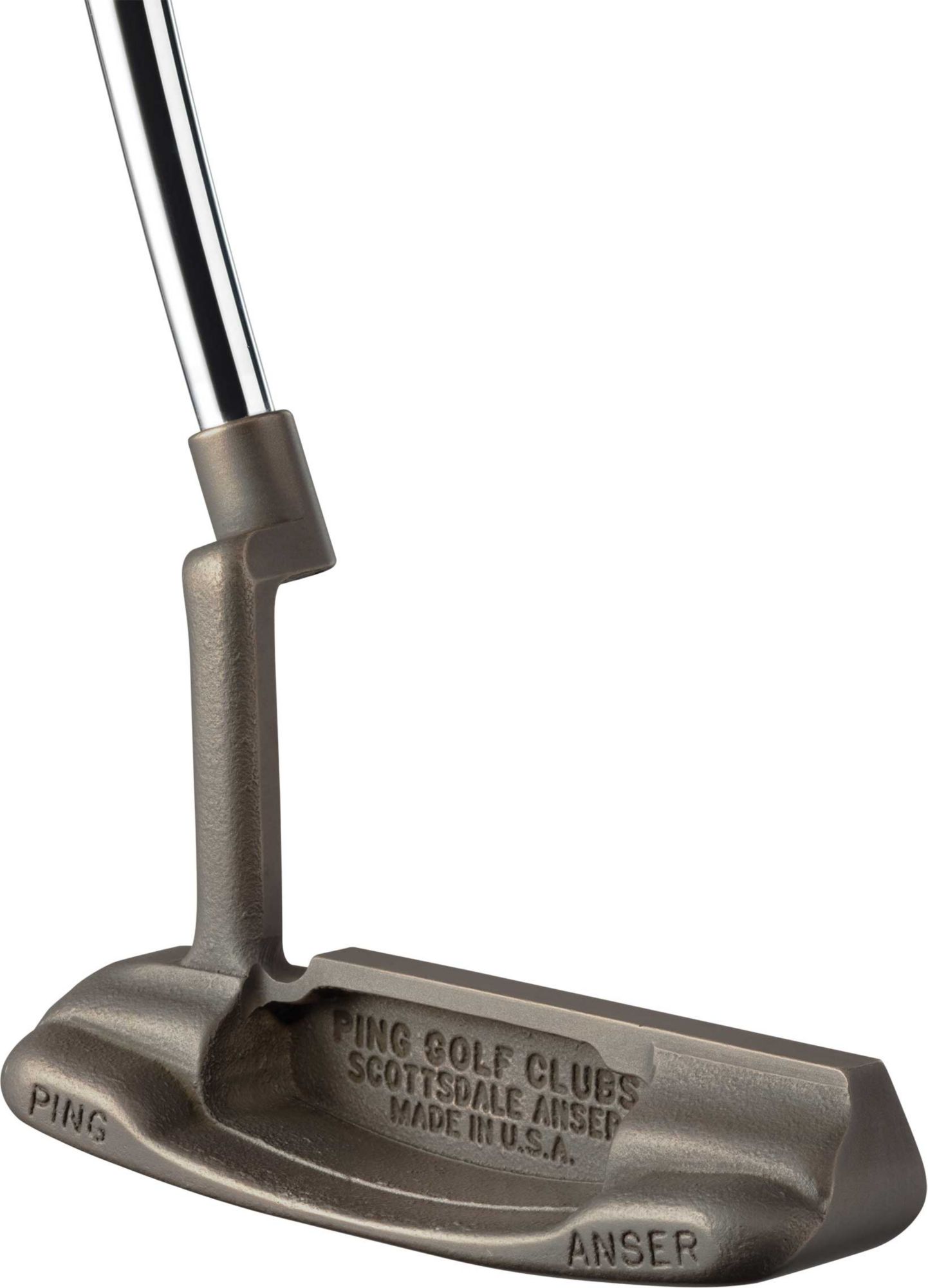 Putt with a piece of golf history while using a PING 50th Anniversary Anser KS Putter. Constructed using the original mold developed by Karsten Solheim, the Anser KS is machined to the same exacting standards and constructed using the same components as the original Anser model. True to PING’s commitment to continuous improvement, Tungsten heel and toe weights were incorporated into the iconic head to create timeless aesthetics and optimal feel.
