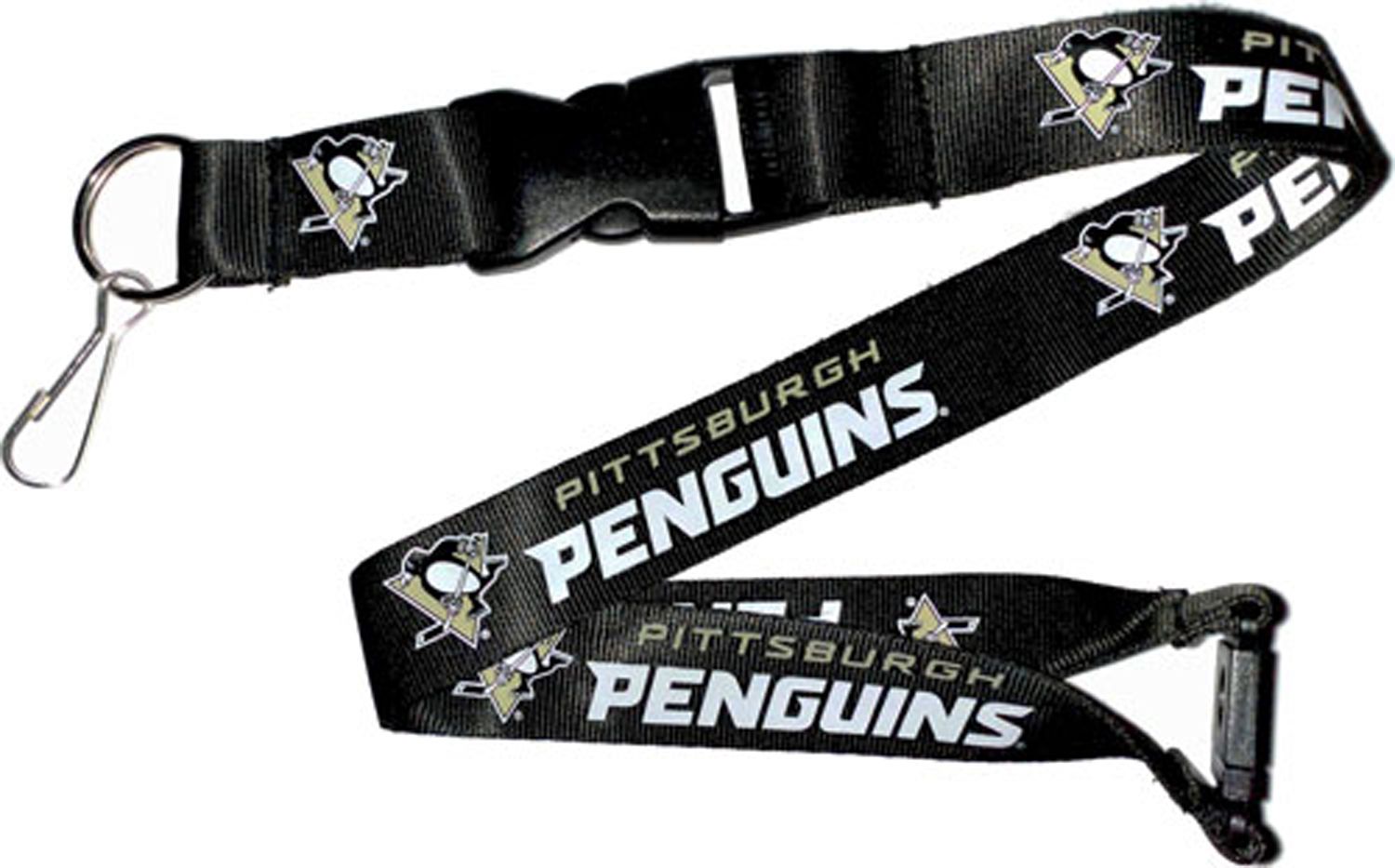 Keep your team pride close with the Aminco® Pittsburgh Penguins lanyard. Your favorite NHL® team’s logo and wordmark are printed all over this nylon, team-colored lanyard, showing everyone your Pens spirit. A detachable buckle connected to the key ring easily allows you to separate your keys as quickly as Sidney Crosby scores a goal. A buckle at the top separates when the action intensifies with the Aminco® Pittsburgh lanyard.