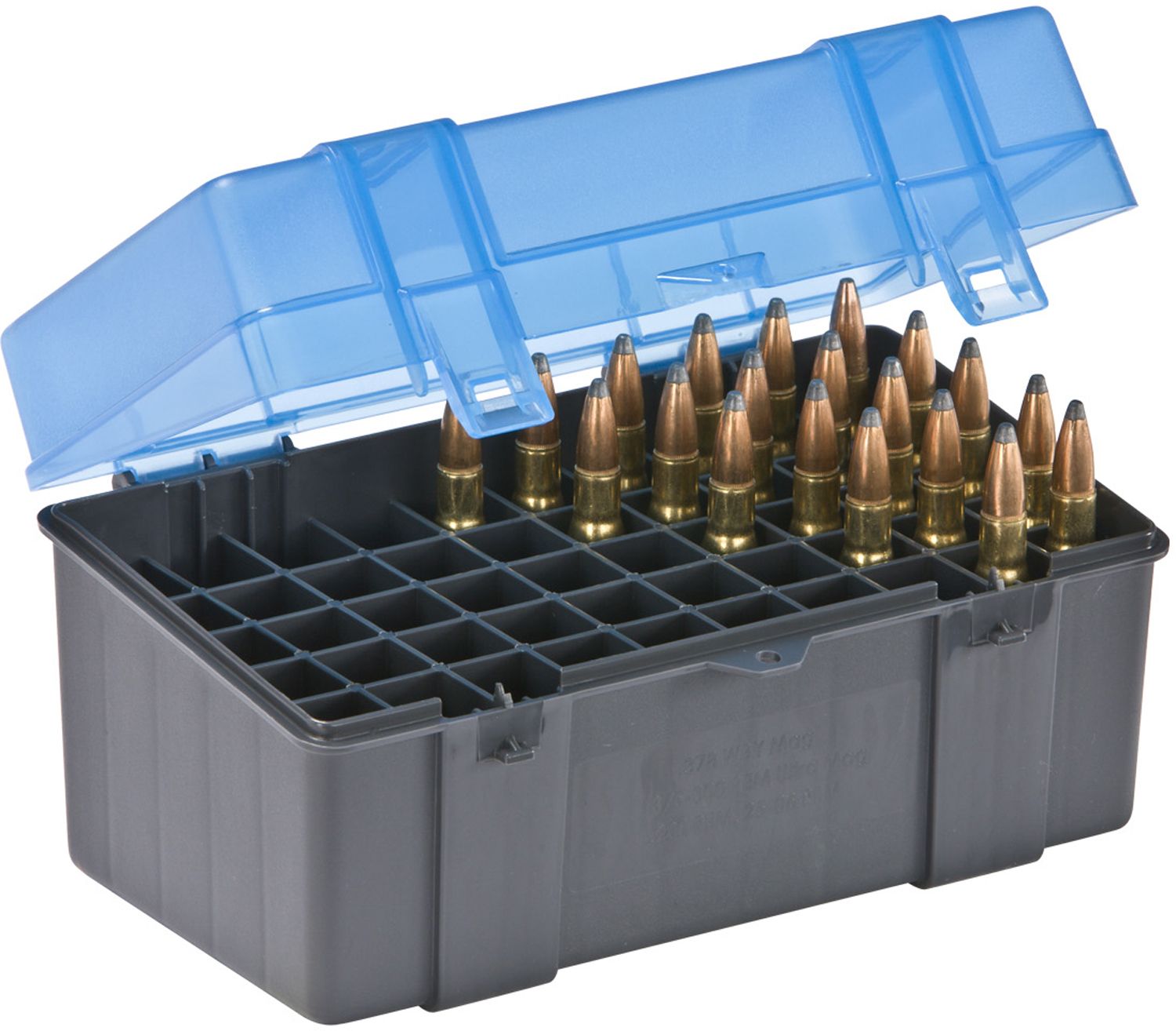 Store your ammo securely with the Plano® 50 Round .357 Wby Cartridge Box. The box is designed with hard-shell plastic and keeps your ammo in place. It also has a flip top lid for easy access. The box holds 50 rounds of ammunition including .30-06, 7mm Mag, .25-06 Rem and more.