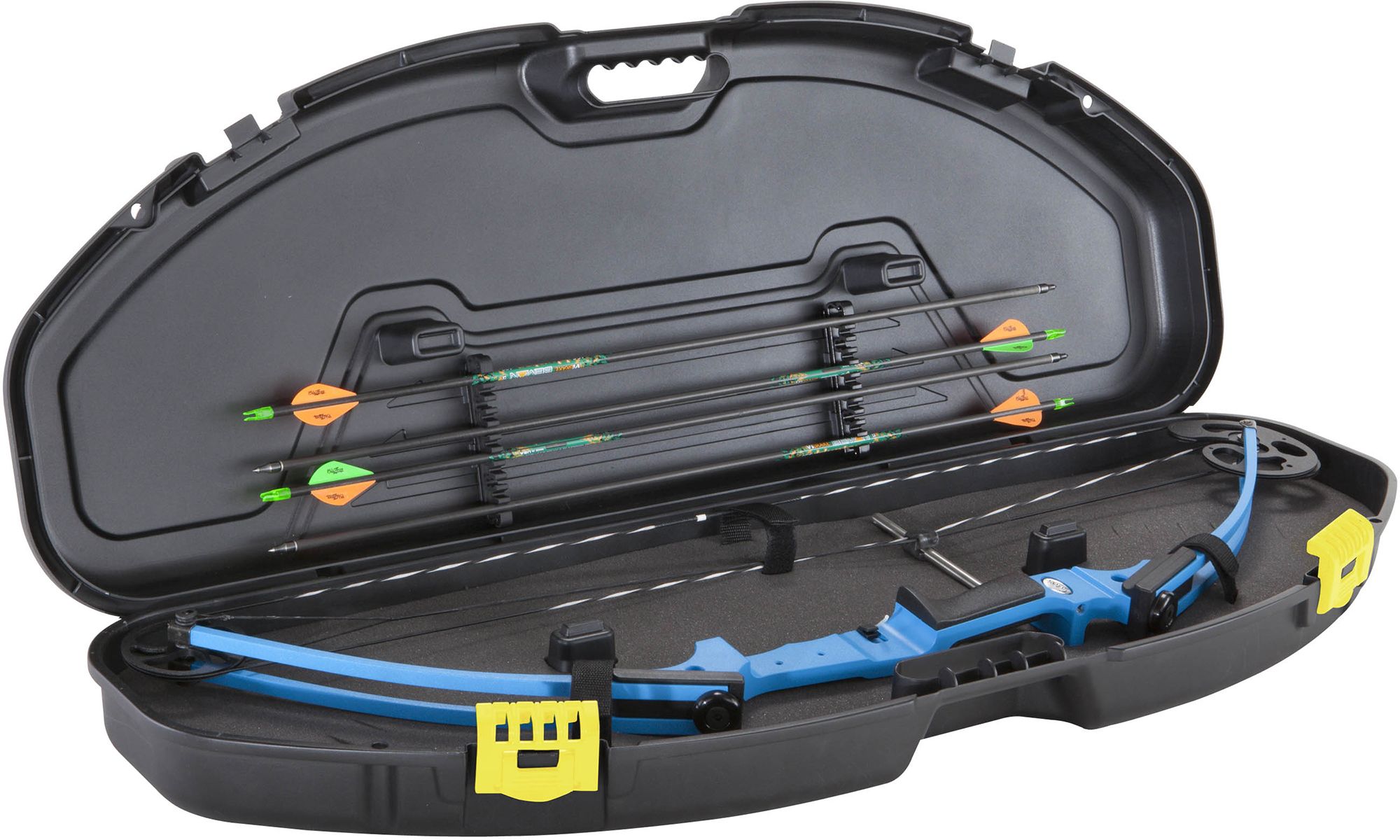 Providing convenient and protective storage for smaller sized bows, the Plano® Compact Bow Case features the PillarLock® system for crushproof strength. In addition, this case is equipped with high-density foam, durable latches, arrow storage under lid, adjustable tie-down straps and a comfortable molded-in handle.