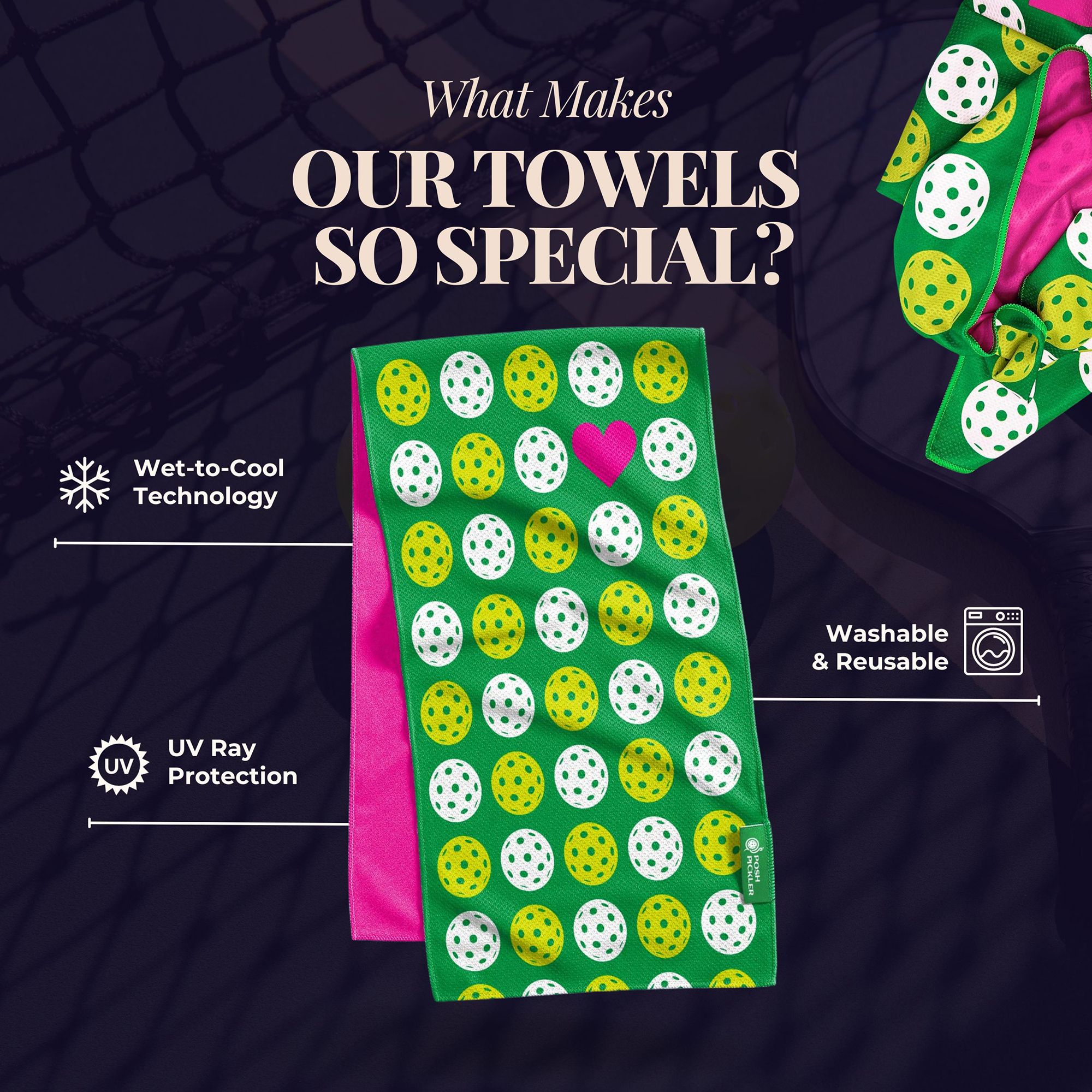 Stay cool and comfortable on the court with advanced cooling technology. Designed to keep you feeling and playing your best for hours. Get instant relief from the heat with cold-activated technology. Every towel comes with a clip-on traveling case that easily attaches to your bag. Wipe away sweat and keep your body temperature in check–then when you’re done, simply toss them in the wash.