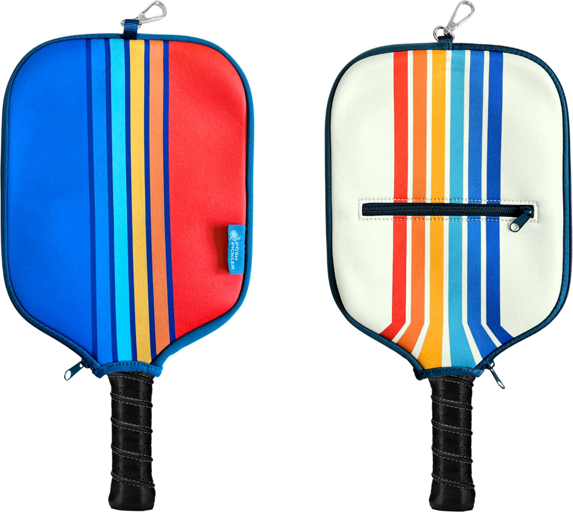 Protect your paddle in style with our new pickleball paddle covers. These weather-resistant covers are built to last, protecting your paddle from scratches, scuffs, drops, and dings.They also feature a built-in, zipper-sealed pocket for your small personal belongings, like your keys or phone. Plus, with a convenient carabiner clip, you can easily attach your paddle to your bag or hang it up while you smash sets. Whether you’re a beginner or a pro, our pickleball paddle covers will keep your gear looking stylish as well as safe and sound, so you can focus on your game.