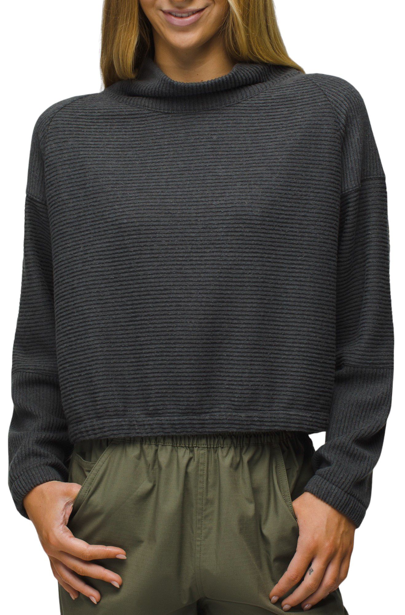 Drape yourself in relaxed comfort with this layer-ready sweater. The rib knit is soft and moves with your body, and the cowl neck elevates your style when you want to stay in.