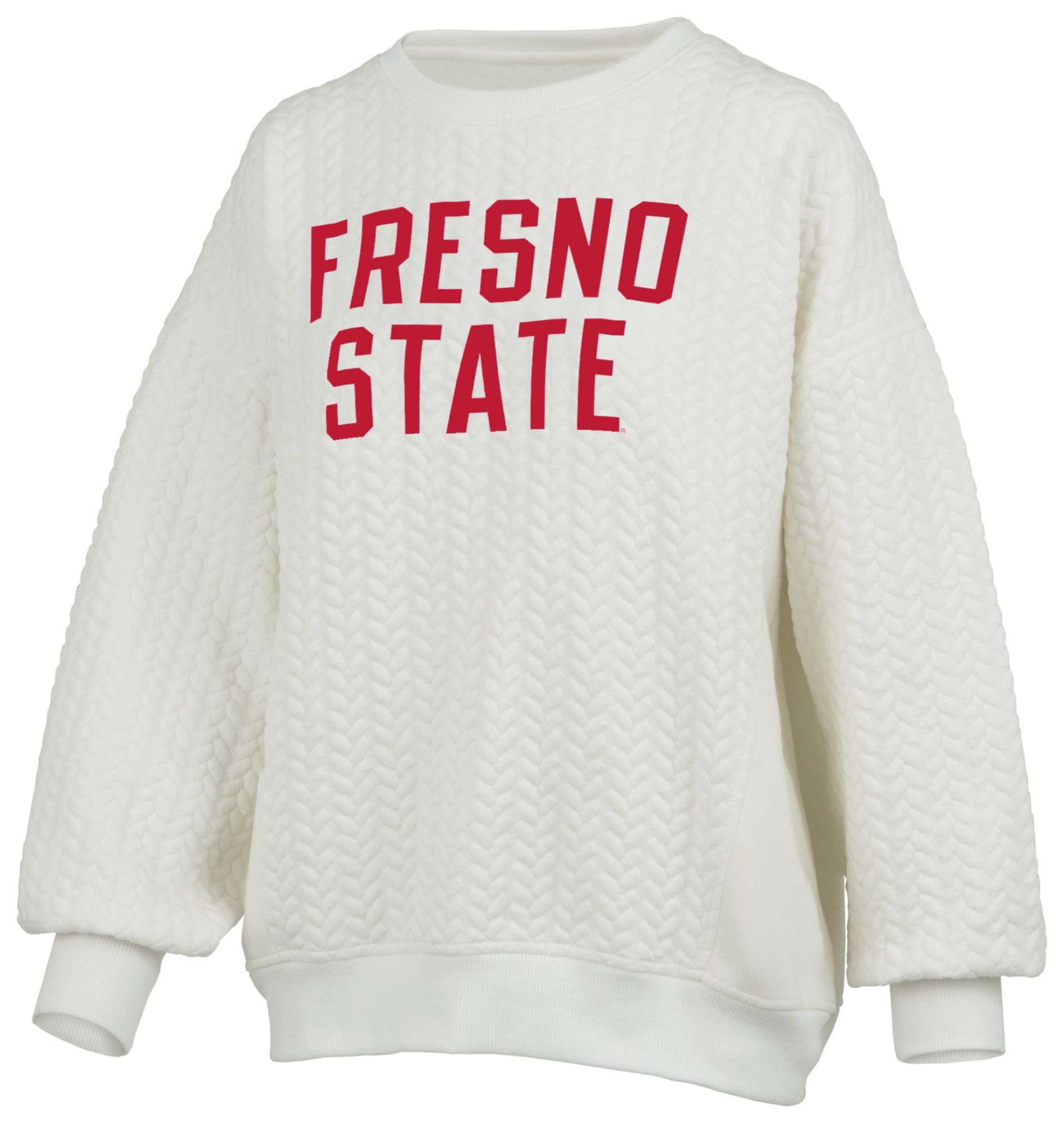 Pressbox Women's Fresno State Bulldogs Ivory Roxy Crew Pullover Sweatshirt