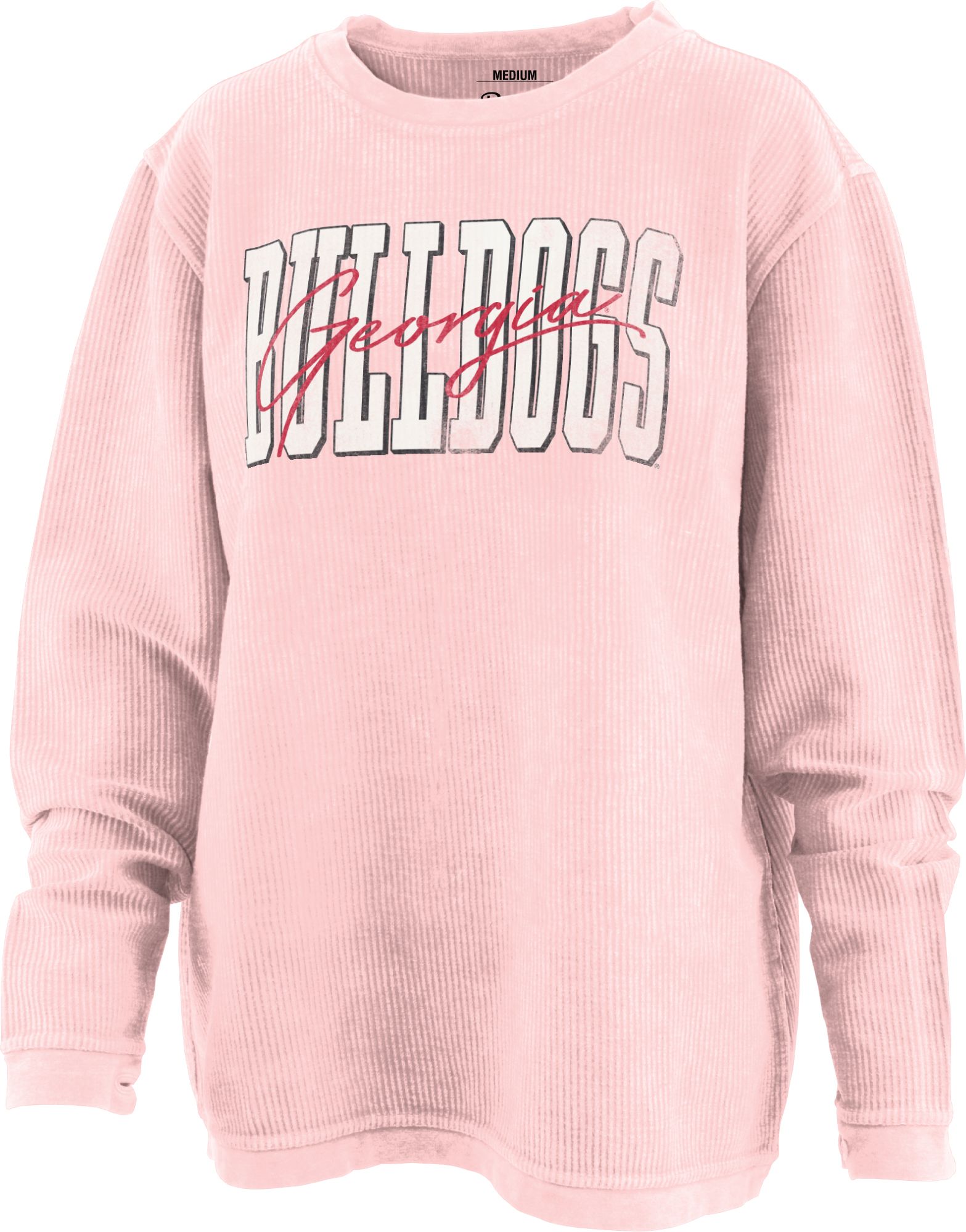 Pressbox Women's Georgia Bulldogs Pink Comfy Cord Crewneck Sweater