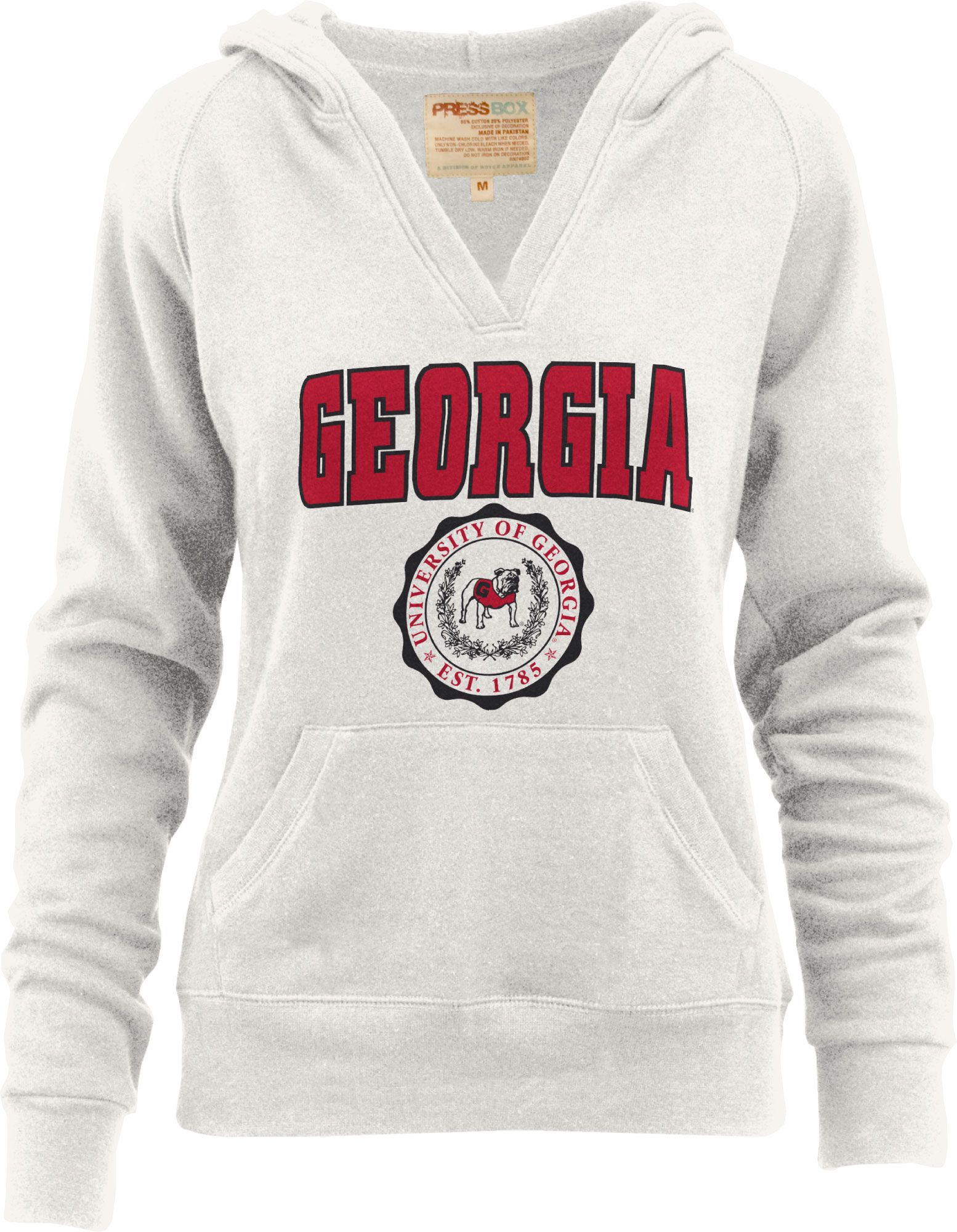 Pressbox Women's Georgia Bulldogs White Marilyn V-Neck Pullover Hoodie