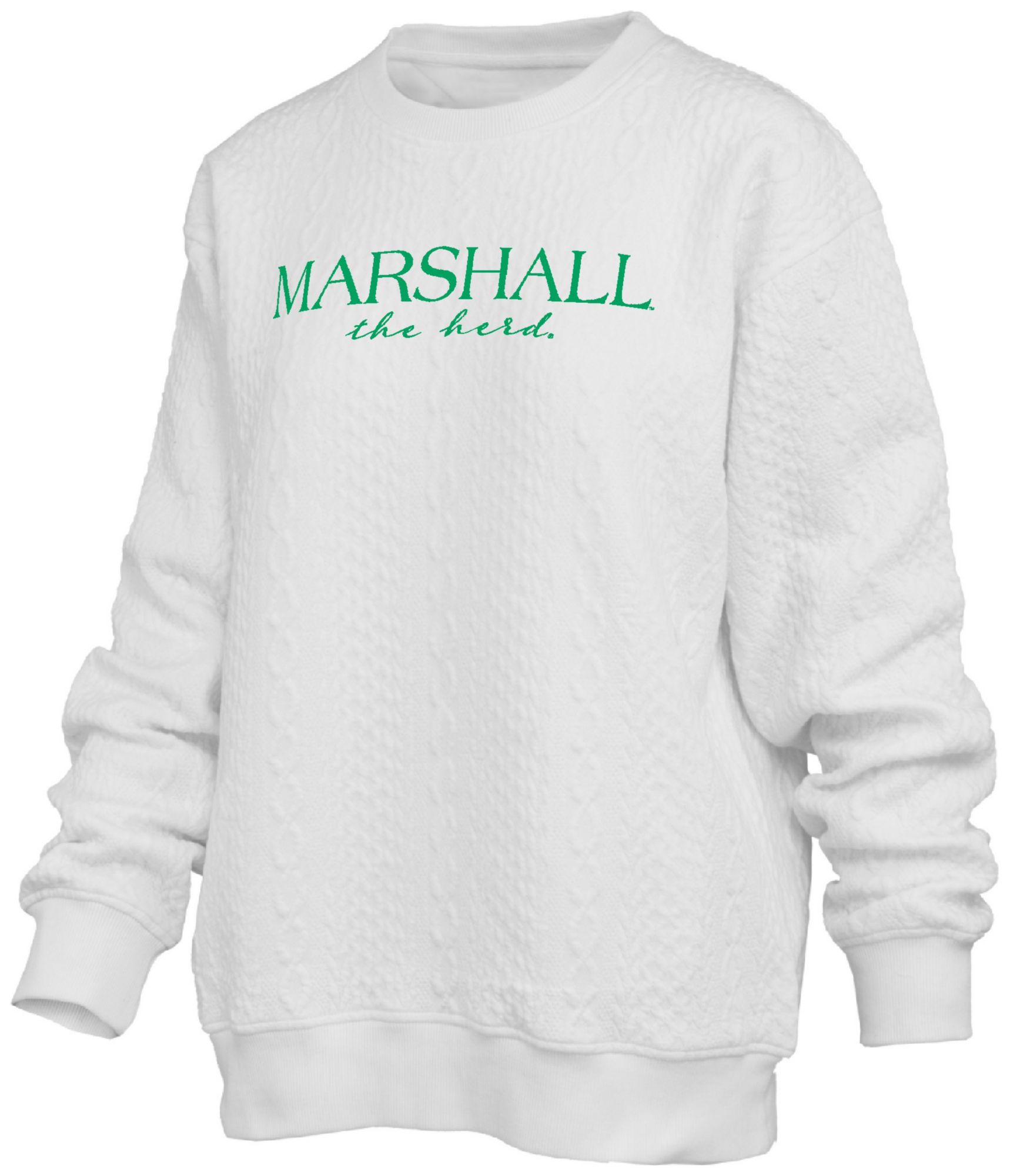 Pressbox Women's Marshall Thundering Herd Ivory Champagne Brandberg Crew Pullover Sweatshirt