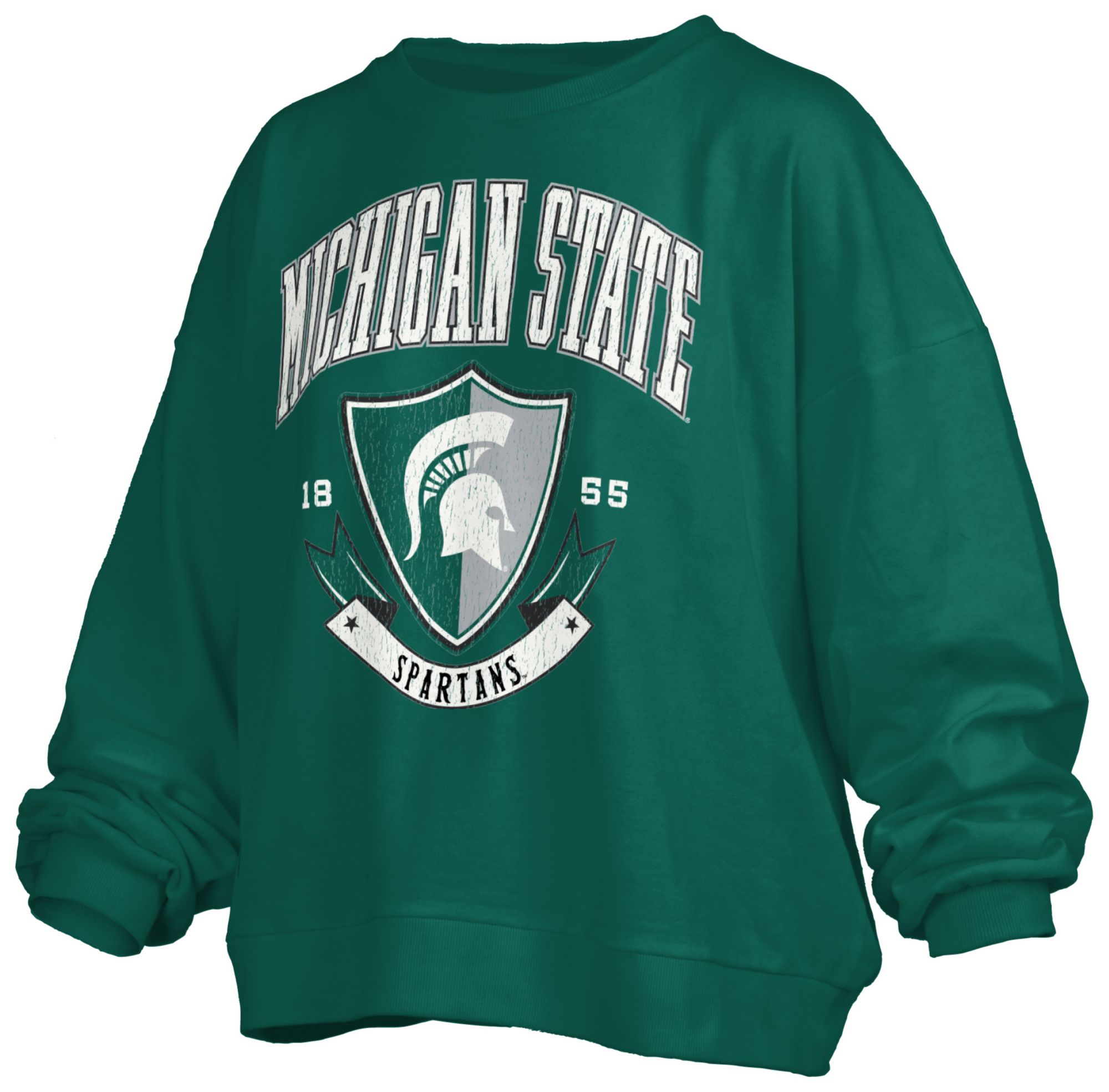 Pressbox Women's Michigan State Spartans Green Buckler Crew Pullover Sweatshirt