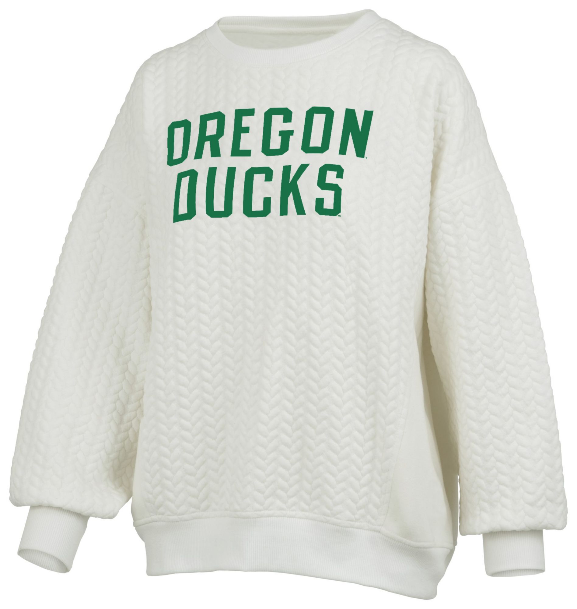 Pressbox Women's Oregon Ducks Ivory Roxy Crew Pullover Sweatshirt