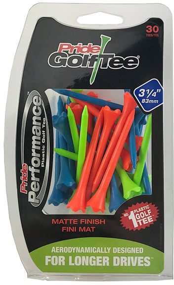 Pride Performance™ 3.25” Matte Golf Tees are designed to help you get the most out of your drives. The 4-prong cup design distributes less friction between the golf ball and tee, resulting in longer drives. This Matte Tees pack includes green, orange, and blue tees.