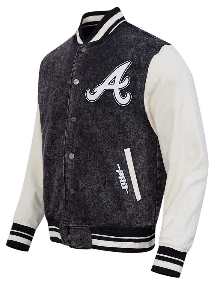 Pro Standard Men's Atlanta Braves Black Rebel Athletics Denim Varsity Jacket
