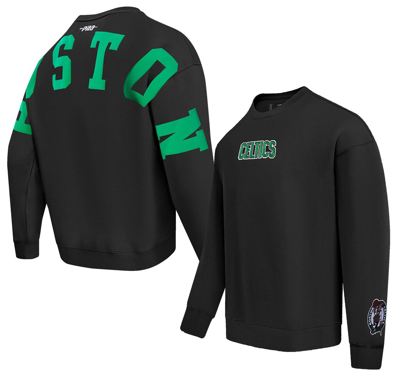 Pro Standard Men's Boston Celtics Black Wingspan Drop Shoulder Fleece Crewneck Sweatshirt