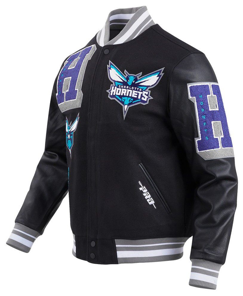 Pro Standard Men's Charlotte Hornets Black Mash Up Rib Wool Varsity Jacket