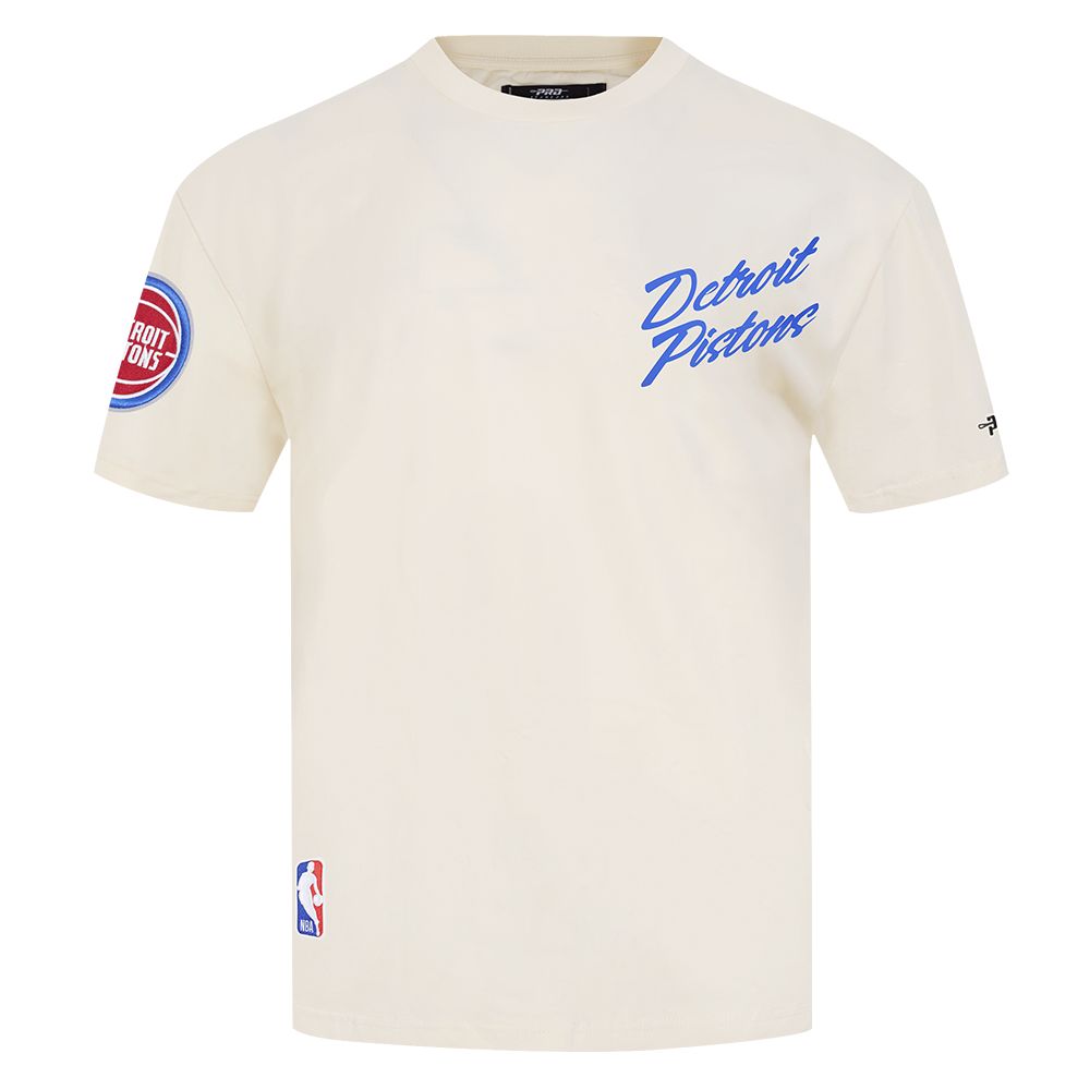 Pro Standard Men's Detroit Pistons Off White Script Drop Shoulder T-Shirt