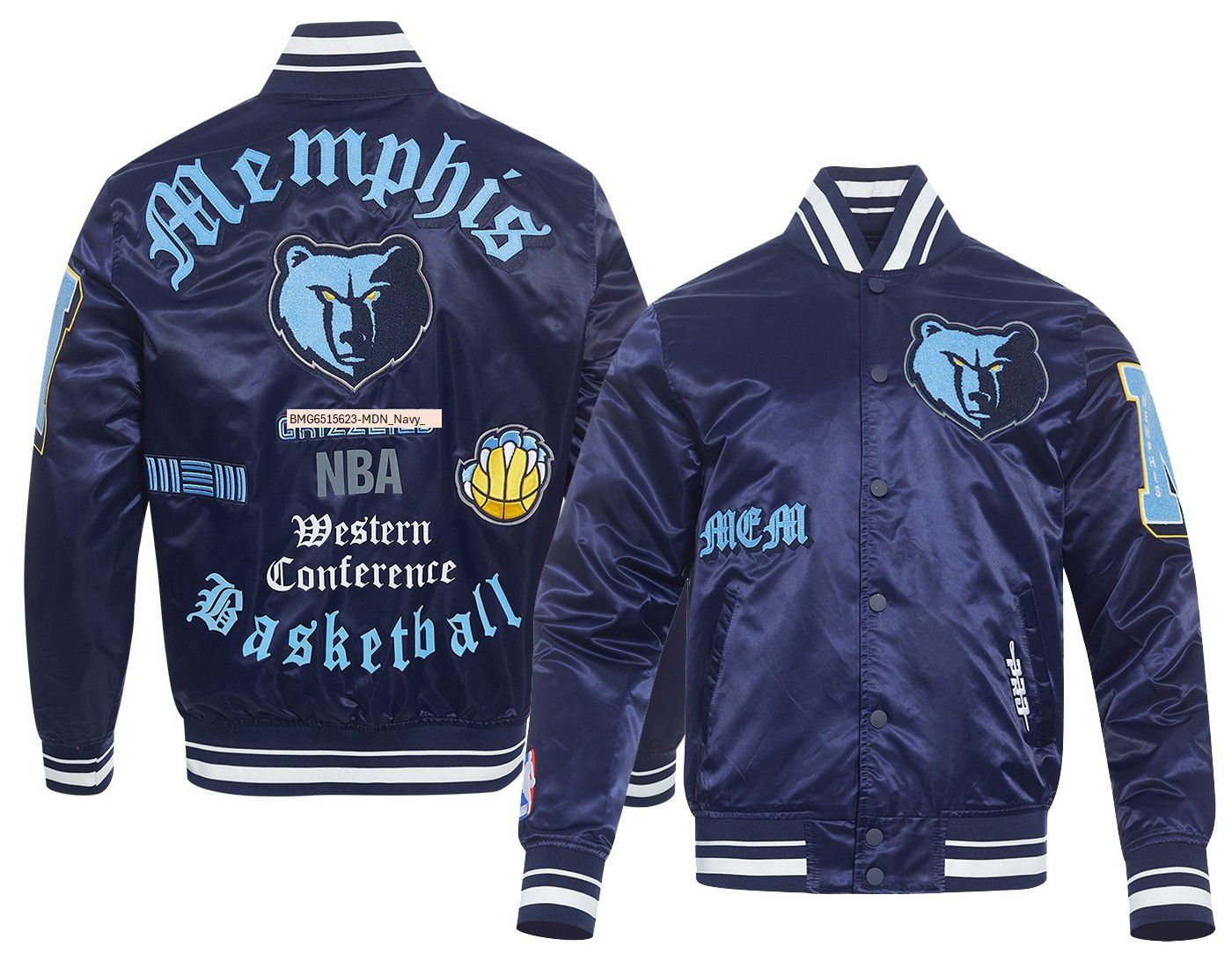 Pro Standard Men's Memphis Grizzlies Navy Old English Rib Satin Jacket
