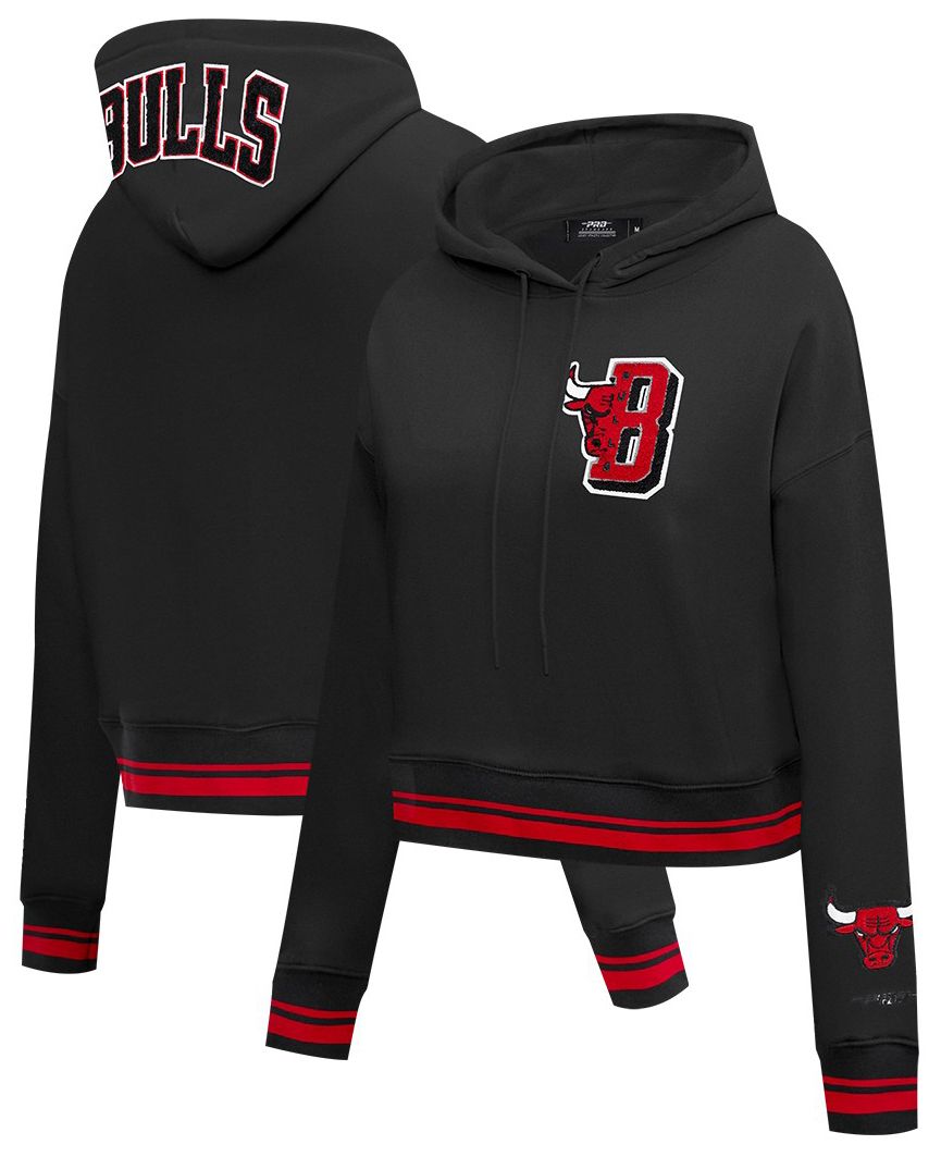 Pro Standard Women's Chicago Bulls Black Mash Up Rib Cropped Fleece Pullover Hoodie