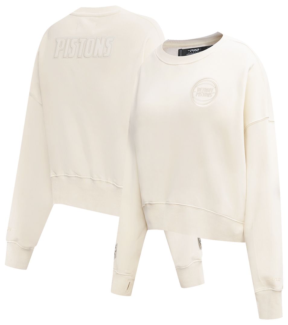 Pro Standard Women's Detroit Pistons Off White Neutral Fleece Crewneck Sweatshirt