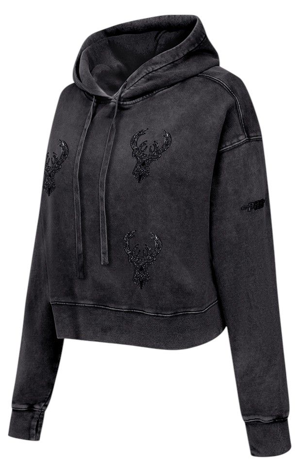 Pro Standard Women's Milwaukee Bucks Black Crystalline Cropped Pullover Hoodie