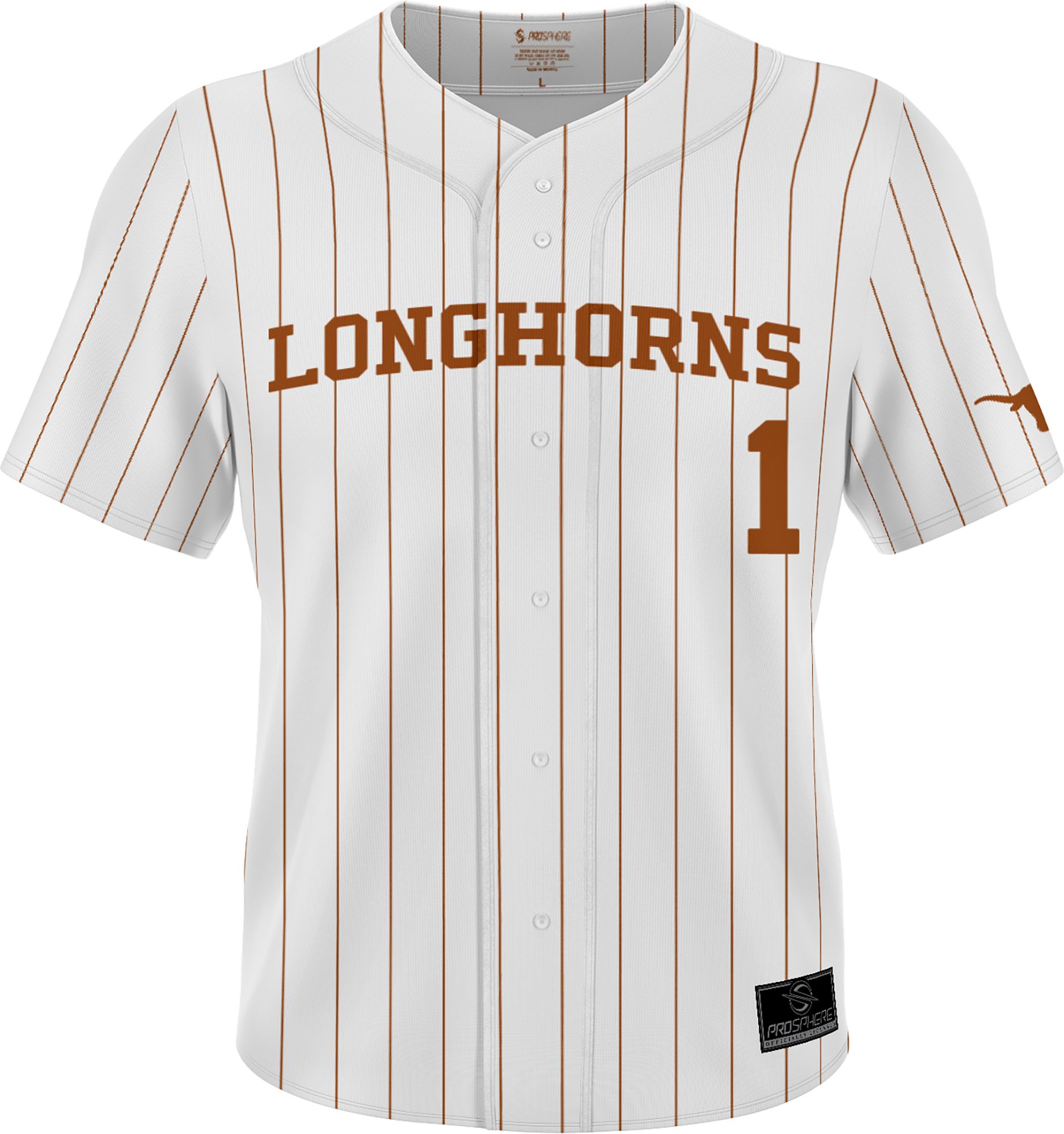 Prosphere Men's Texas Longhorns #1 White Full Button Replica Baseball Jersey