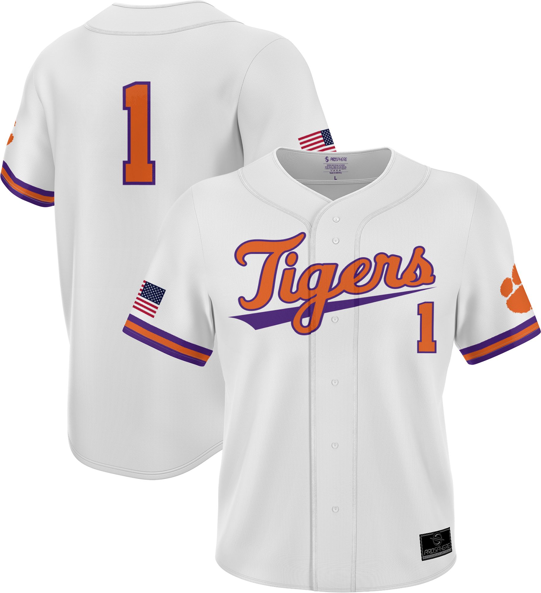 Prosphere Youth Clemson Tigers #1 White Full Sublimated Baseball Jersey
