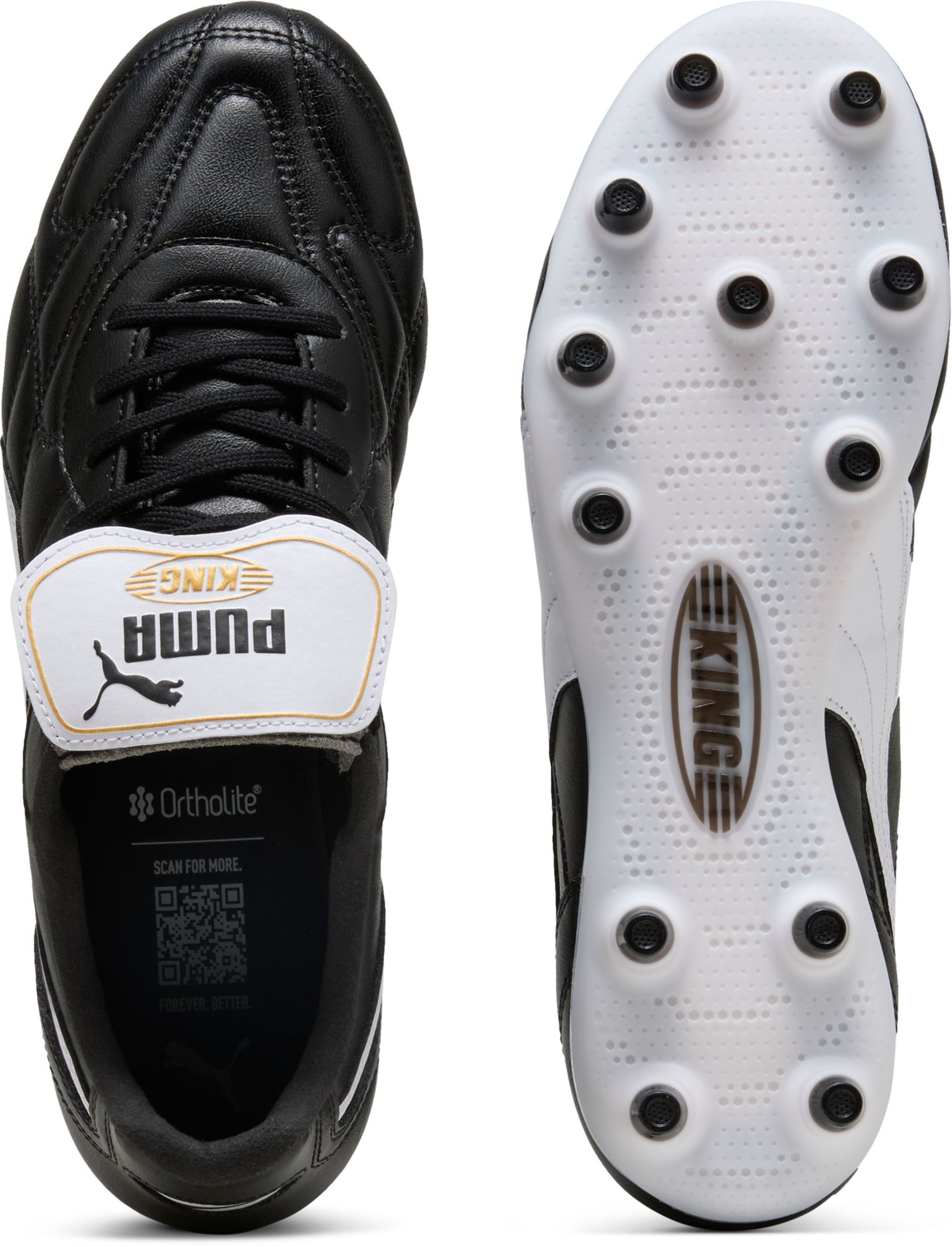 A perfect blend of tradition and innovation, that's the essence of classic KING. The retro-inspired KING TOP collection features iconic elements like the fold-over tongue and decorative stitching, while incorporating a re-engineered lightweight outsole and a new, non-animal-based K-BETTER material for the upper. The finishing touch? The signature retro KING branding.