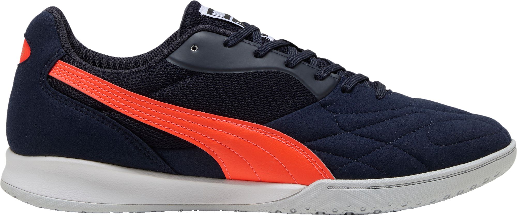 The king top it is the perfect hybrid between an indoor performance football boot and a football culture sneaker. The retro-inspired king top it combines classic king elements, such as the deco stitching in the vamp, with a new low-profile outsole and a super soft synthetic suede material for the upper. Retro king branding adds the finishing touch.