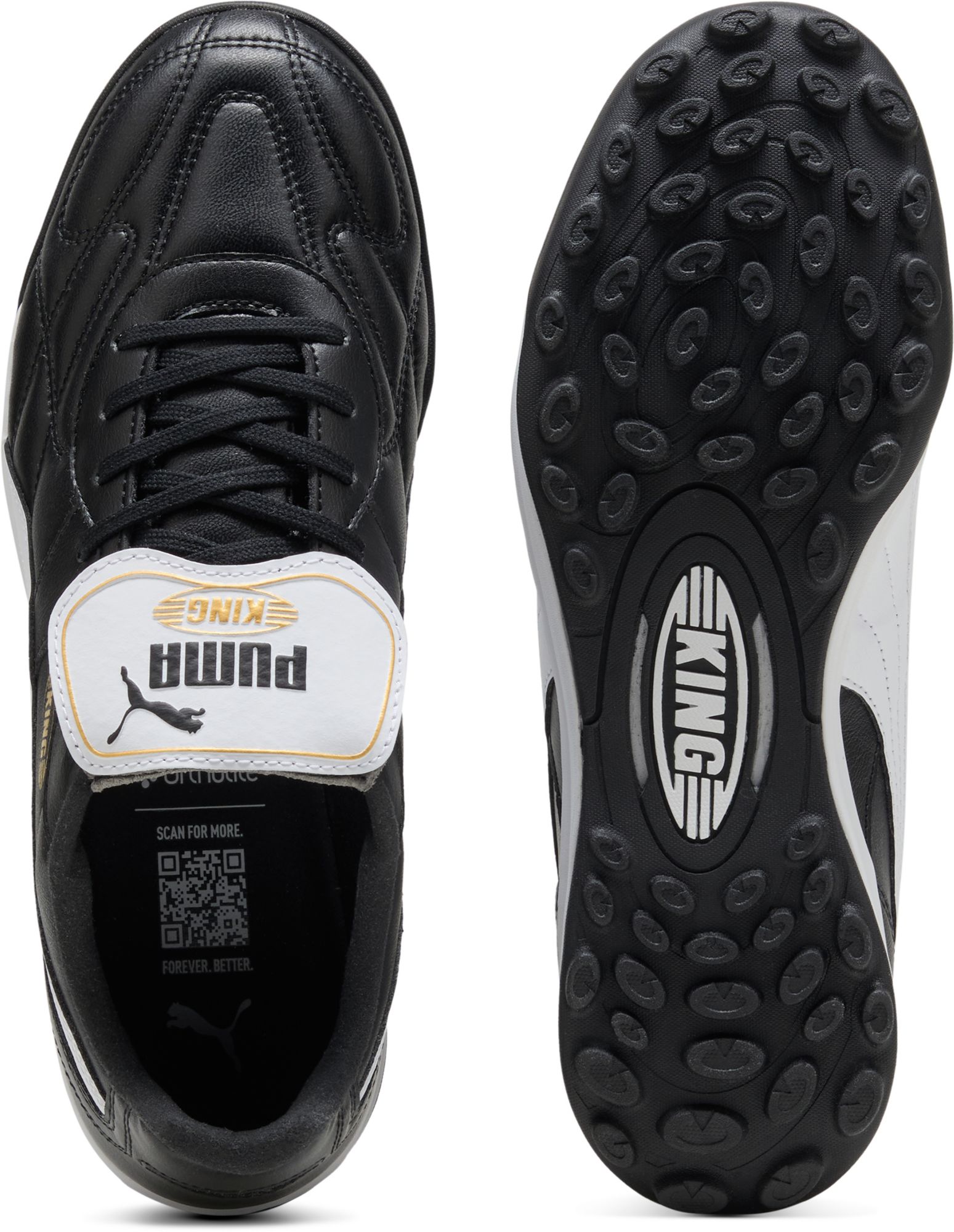 A perfect blend of tradition and innovation, that's the essence of classic KING. The retro-inspired KING TOP collection features iconic elements like the fold-over tongue and decorative stitching, while incorporating a re-engineered lightweight outsole and a new, non-animal-based K-BETTER material for the upper. The finishing touch? The signature retro KING branding.