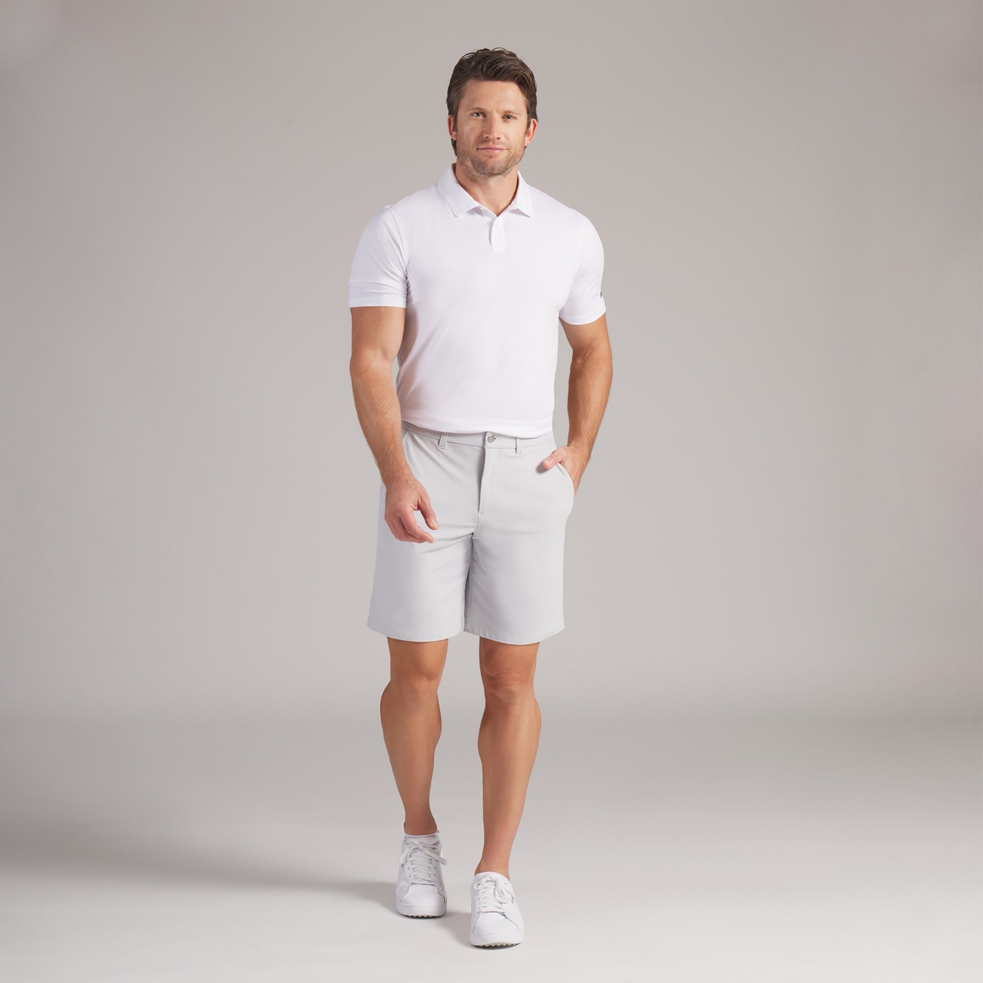 A refined short with real course performance. Smooth stretch frees your range of motion, moisture-wicking tech cools you down, and UPF protection handles long hours in the sun. The 9" fit adds a sleek, elevated finish.