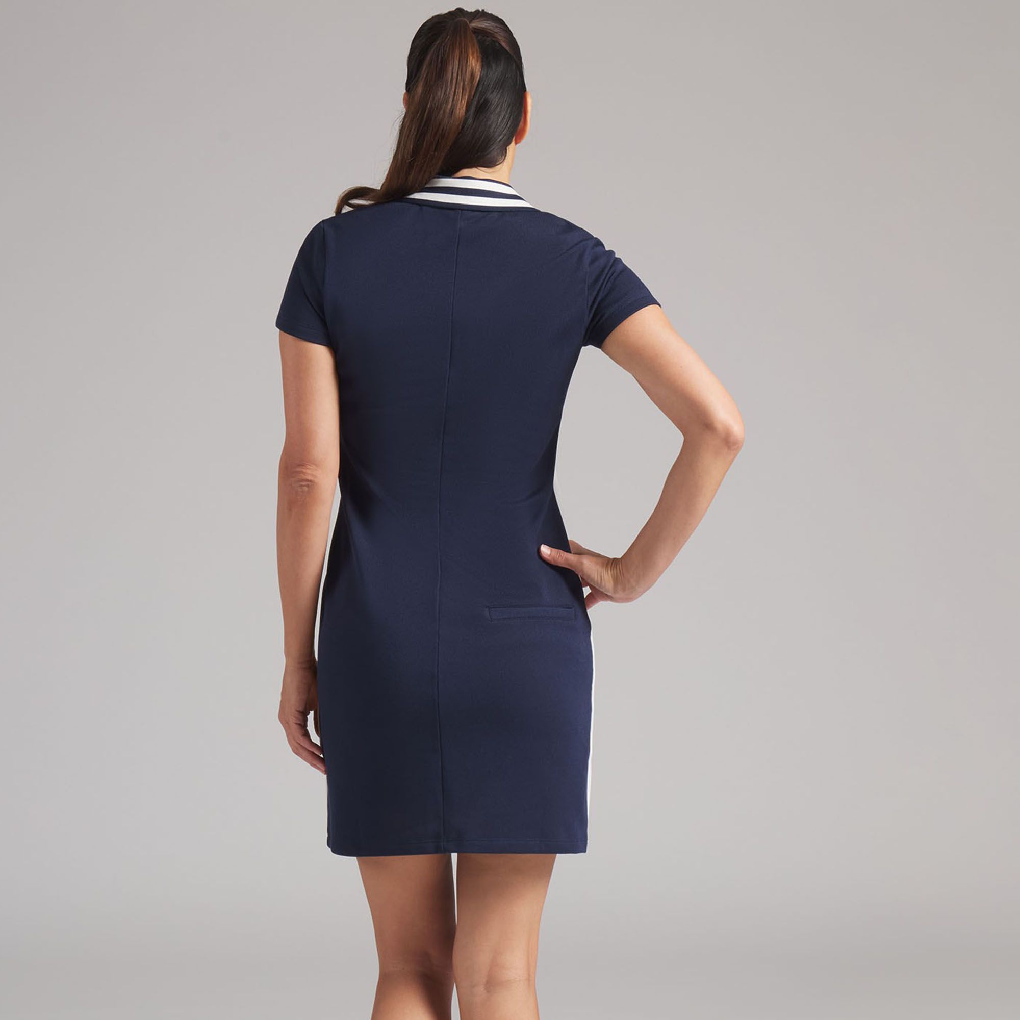 Get a dress that breathes, stretches, and protects your game. Airy pique knit keeps you cool, 4-way stretch powers every swing, and UPF coverage handles the sun while you handle your round. A clean silhouette that earns compliments at the turn and works just as well at brunch after.